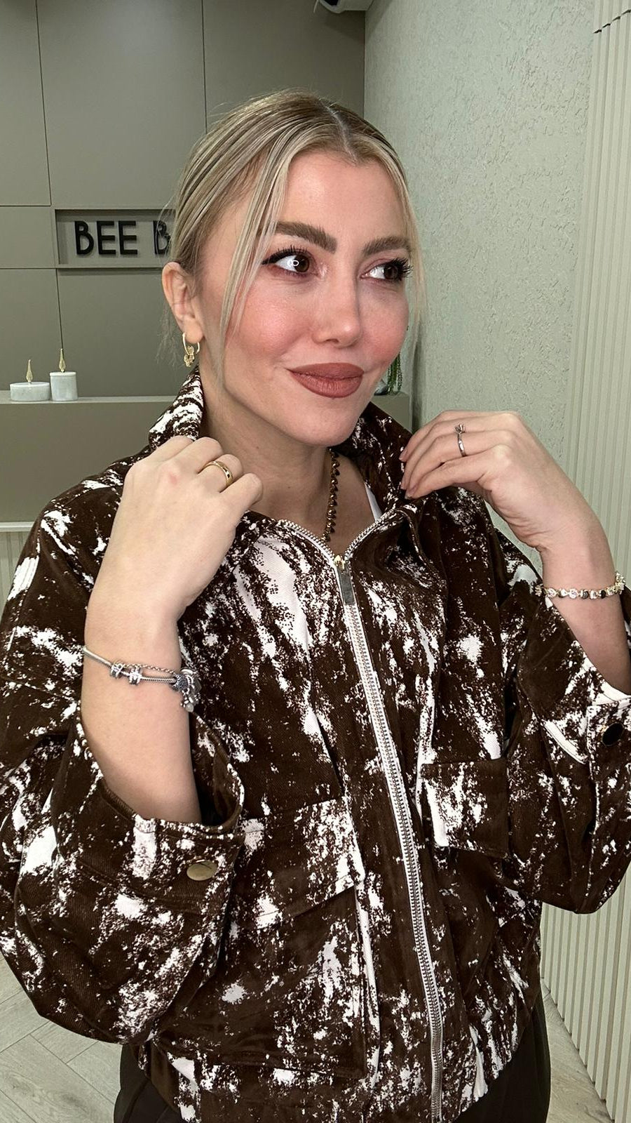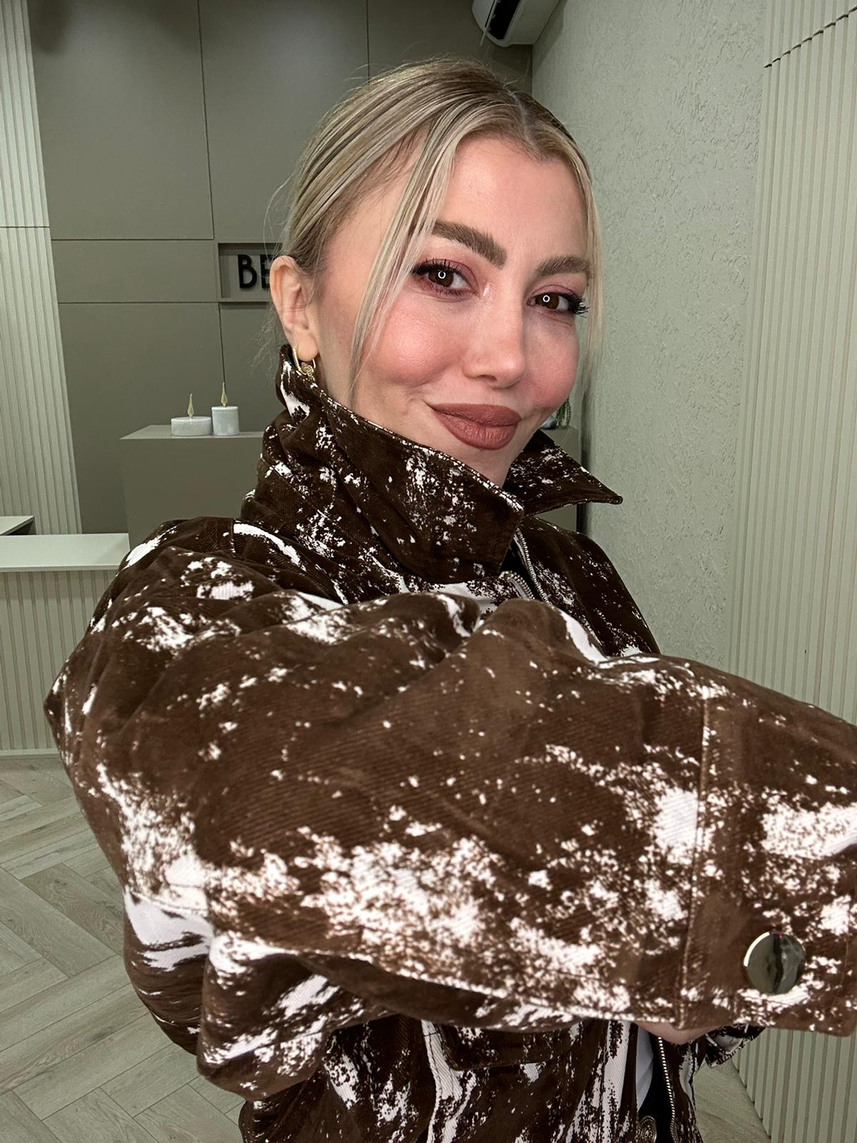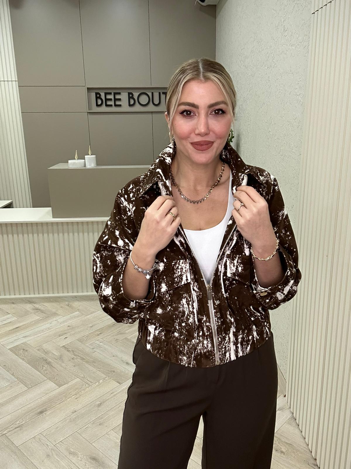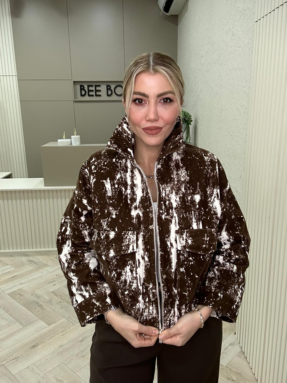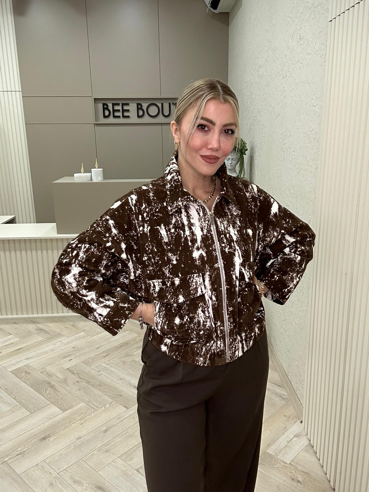 KLN FLOK BASKILI KAHVERENGİ CEKET