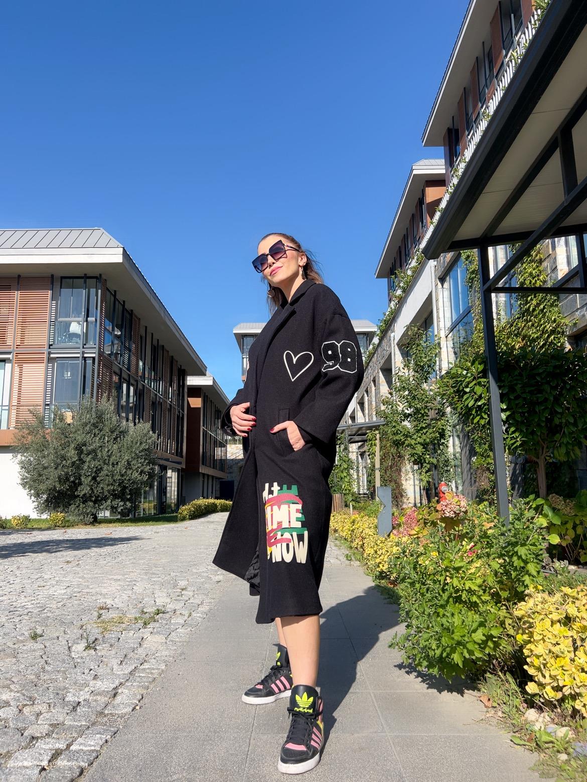 Kaşe Baskı Detaylı Kaban
