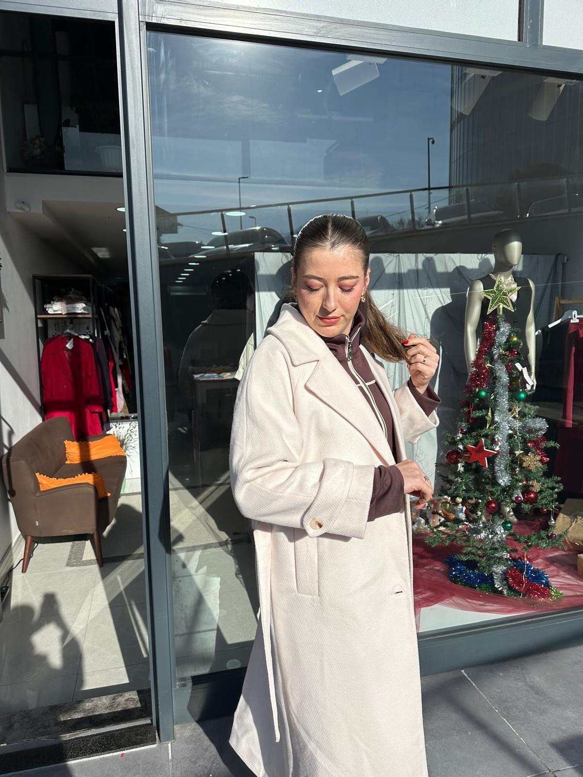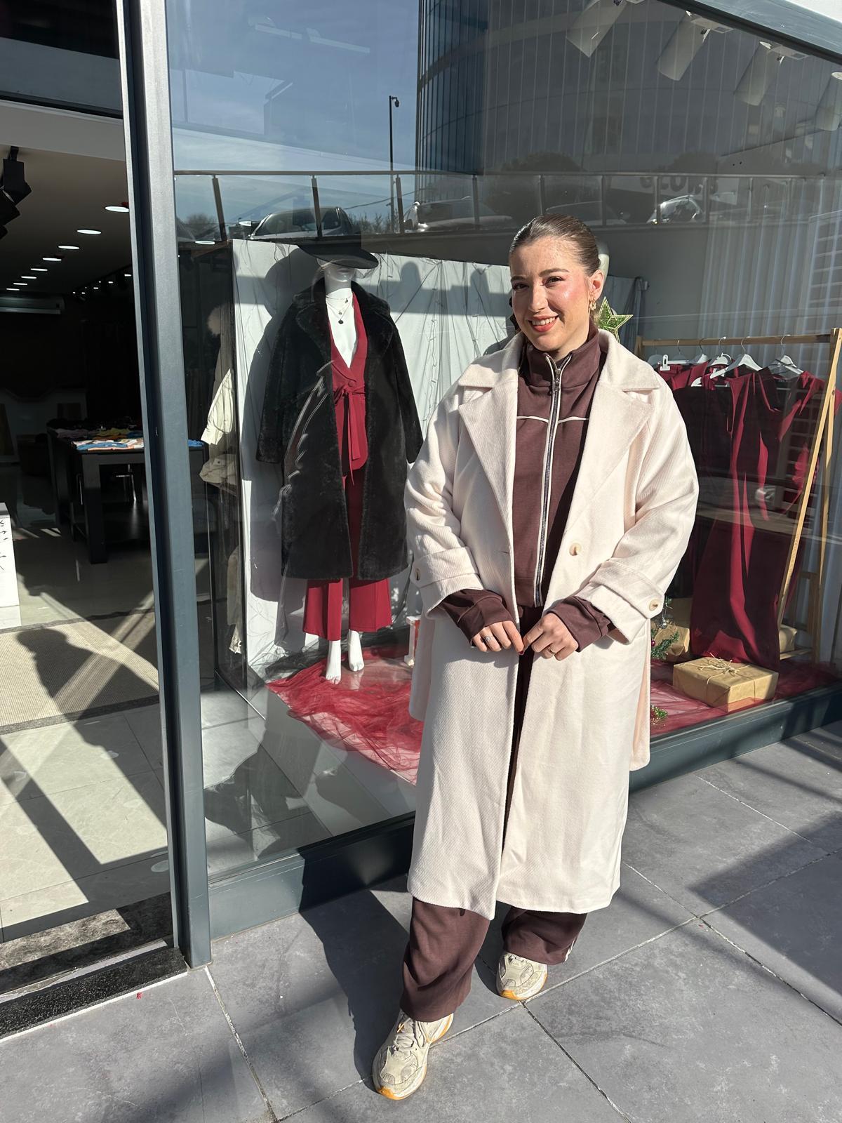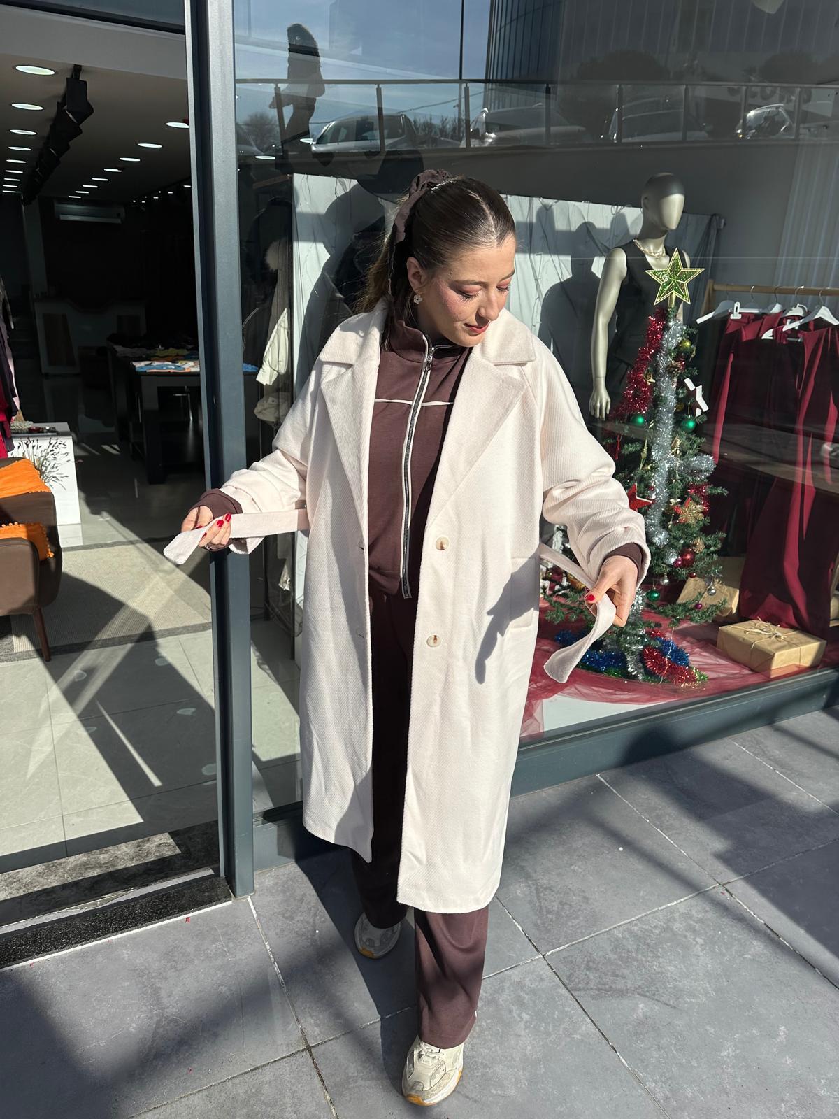 KREM RENGİ BALIKSIRTI DESENLI ASTARLI KAŞE KABAN