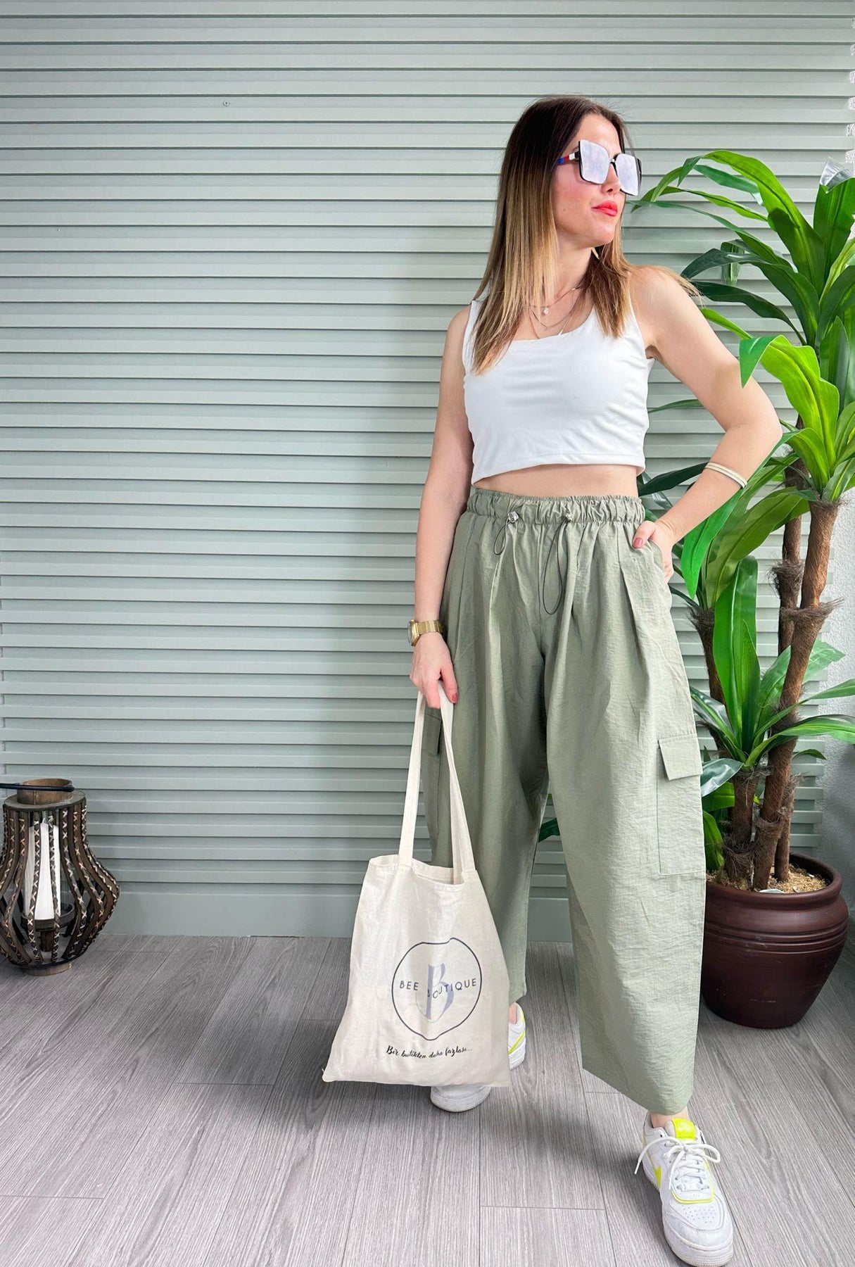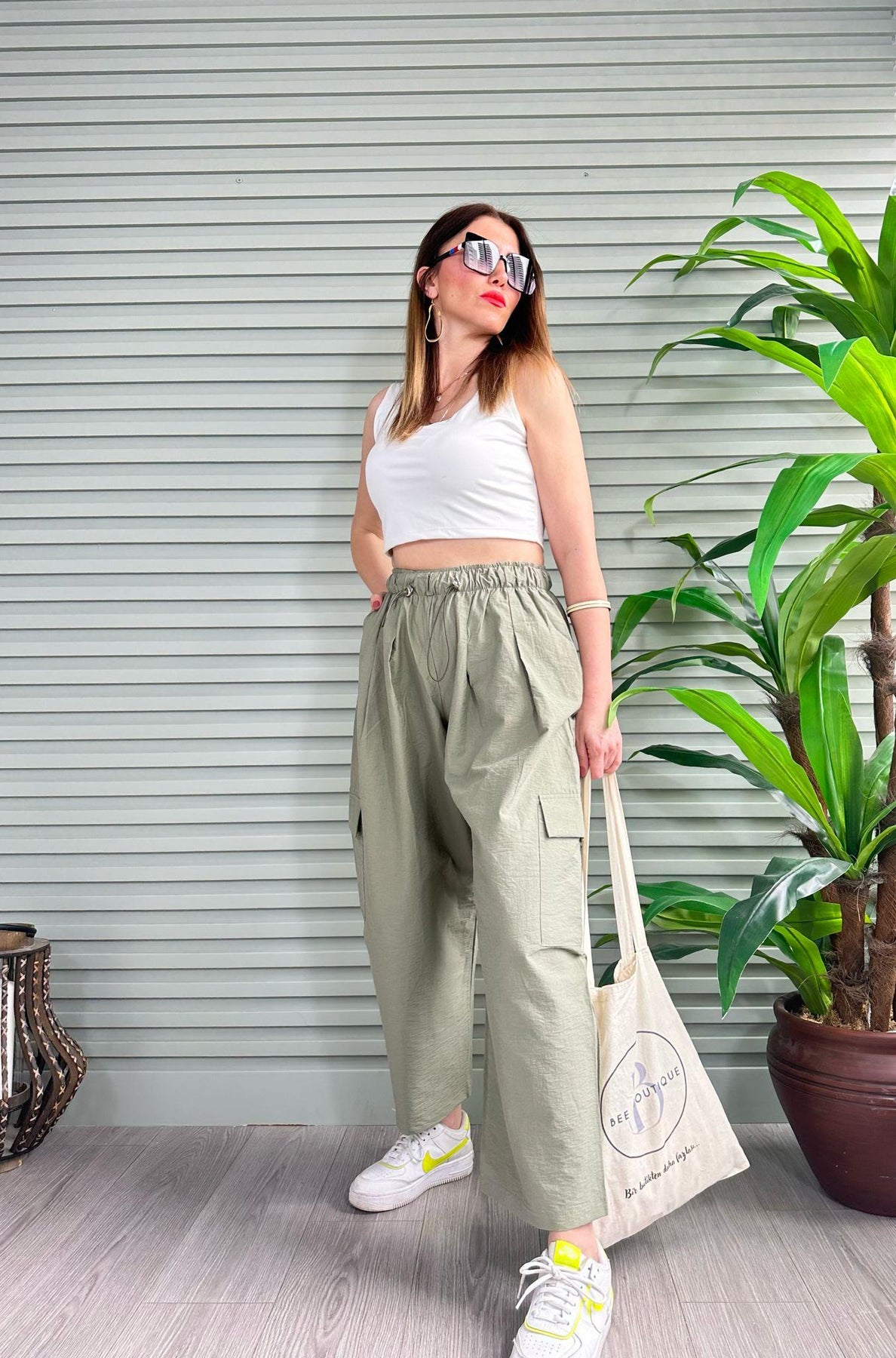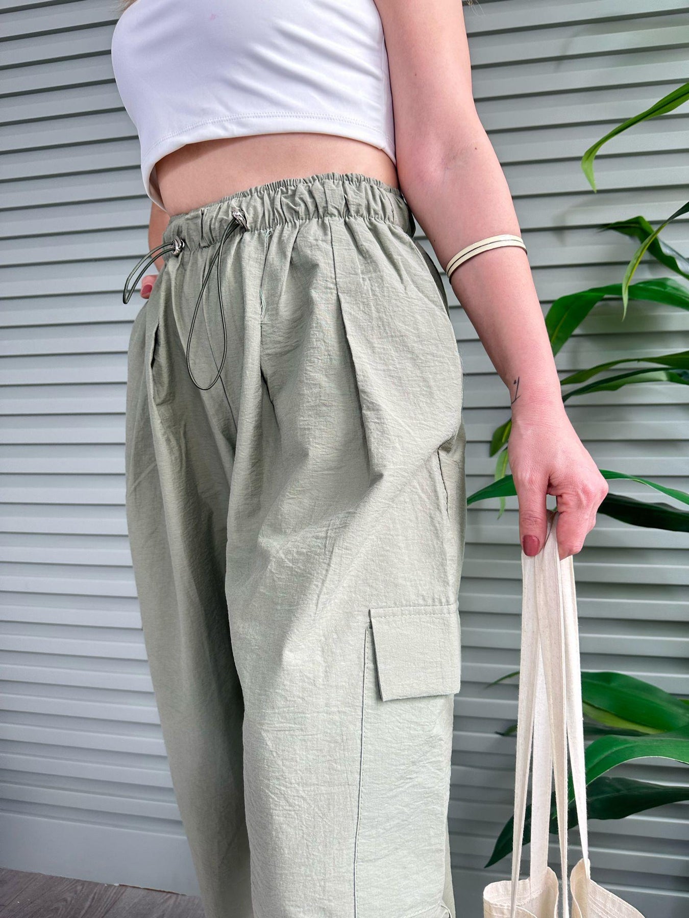 Paraşüt Kumaş Stoperli Pantolon (Yeşil)