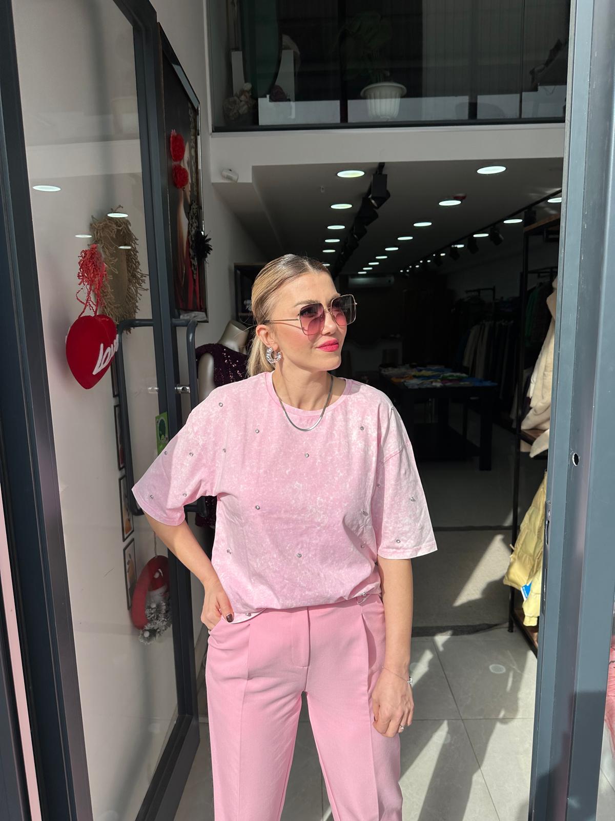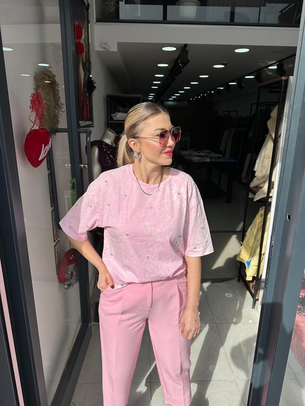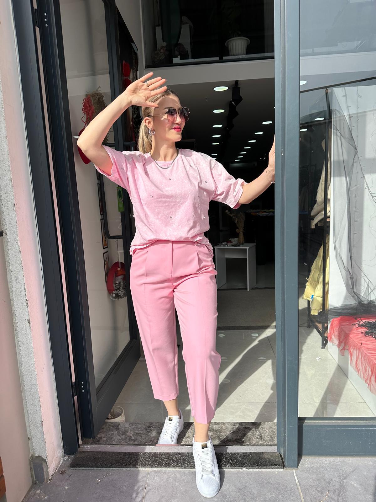 PEMBE KEMERLİ HAVUÇ PANTOLON