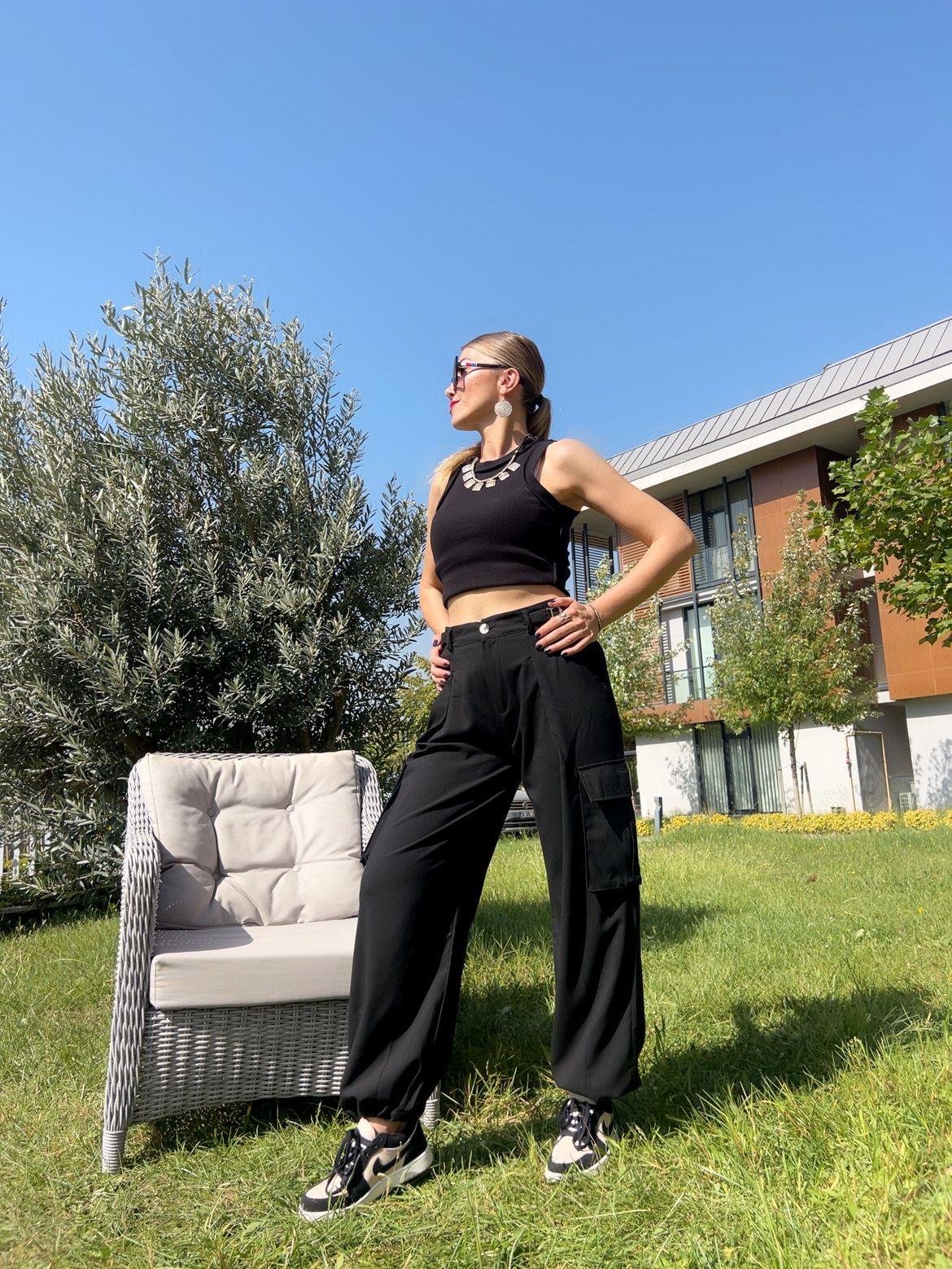 Siyah Stoperli Pantolon