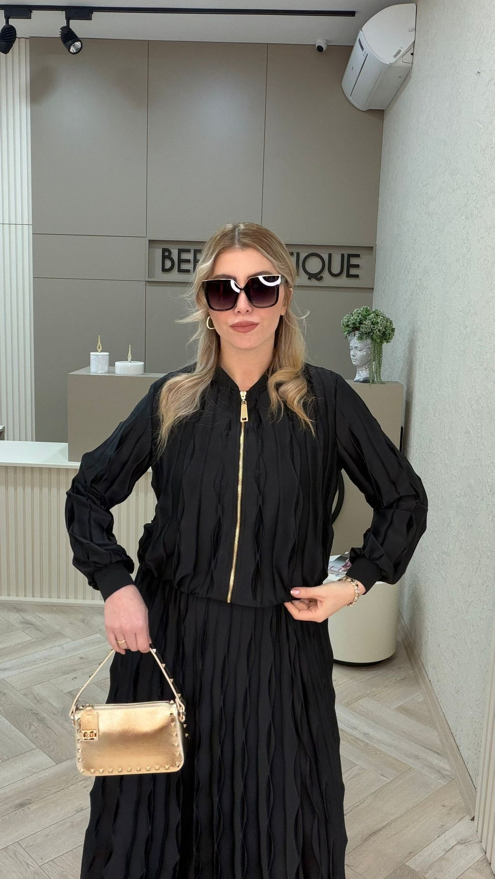 MODELİN KUMAŞI TERLETMEZ NEFES ALIR VE KIRIŞMAYA KARŞI DAYANIKLIDIR.