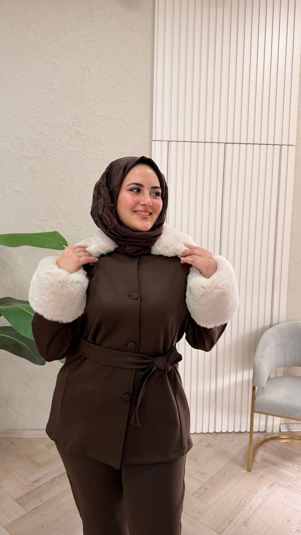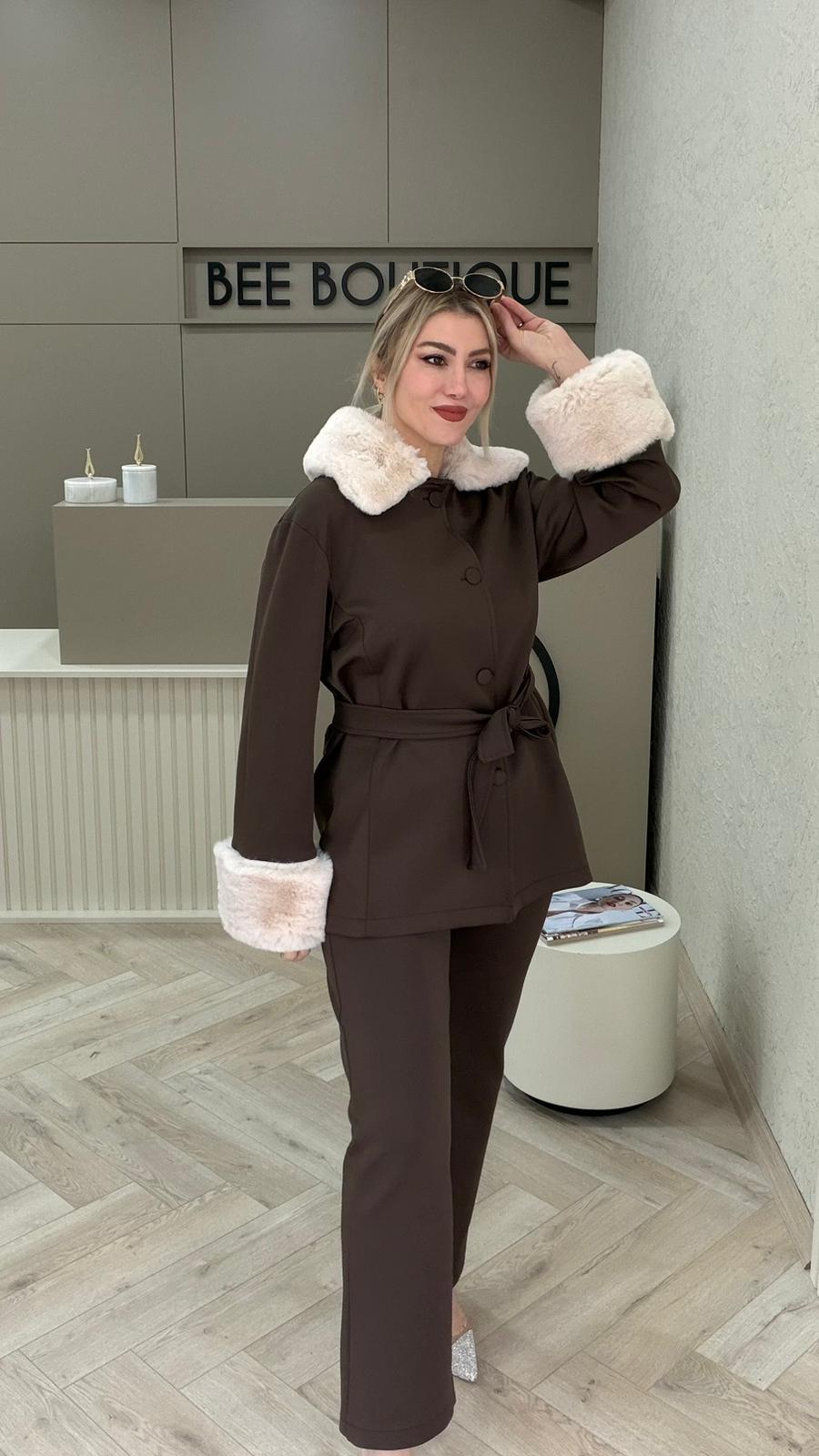 KAHVERENGİ KÜRKLÜ SCUBA TAKIM