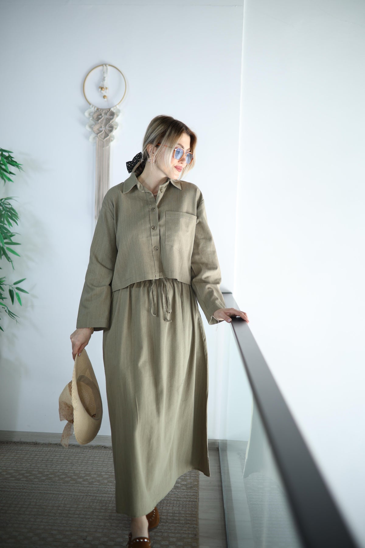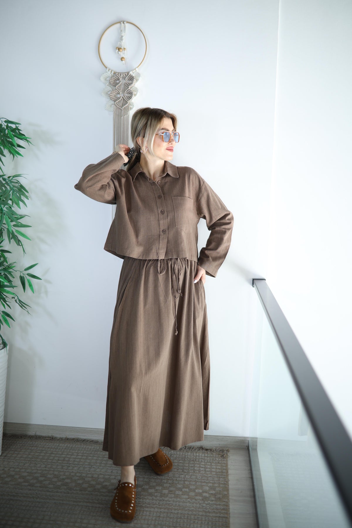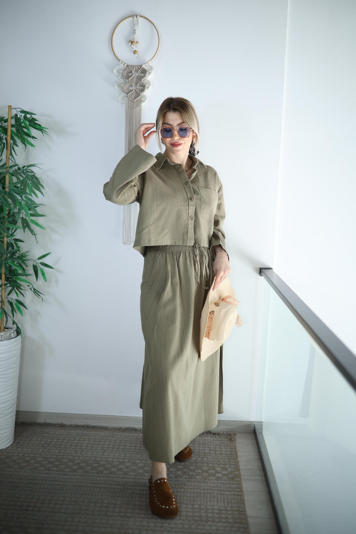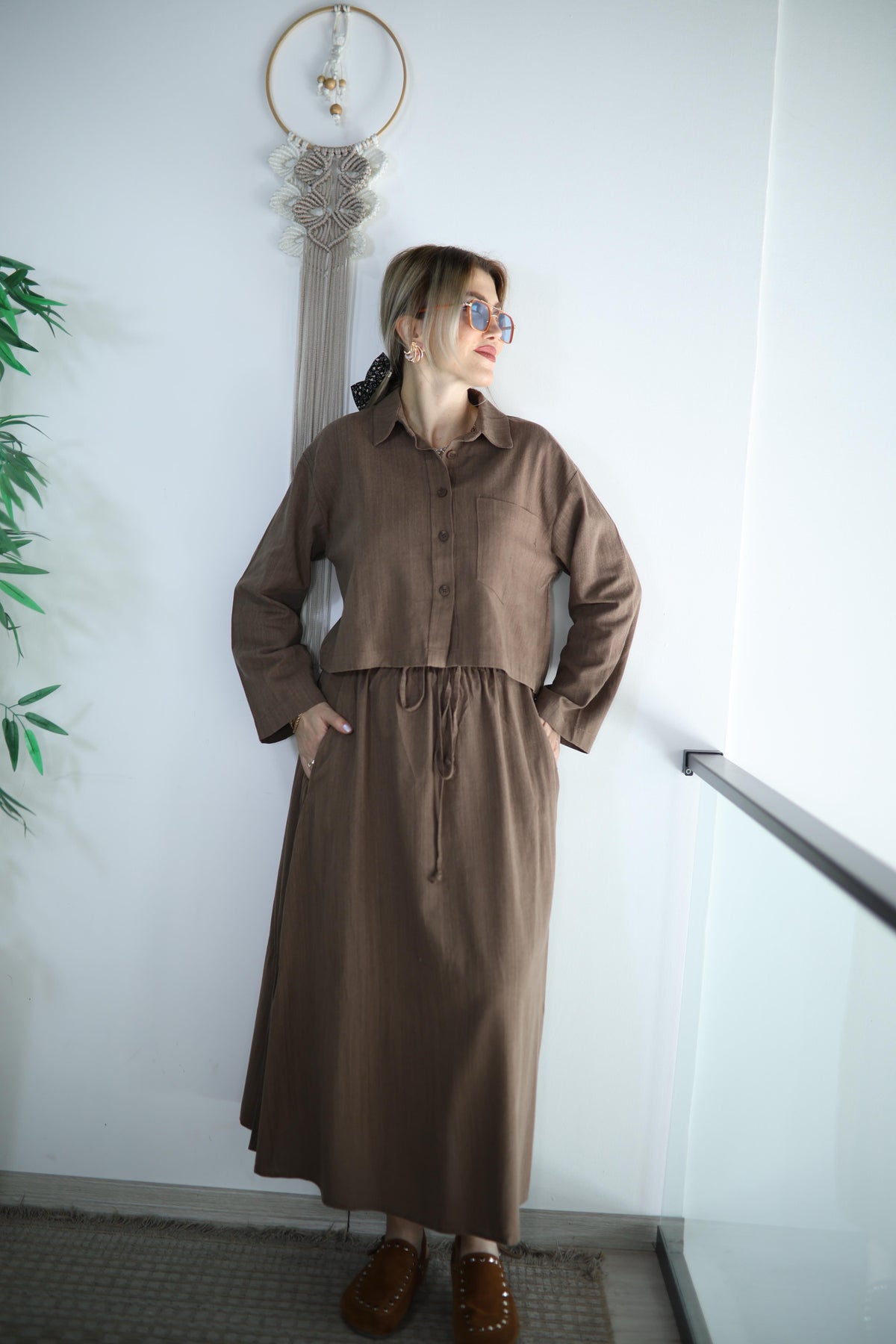 KETEN KUMAŞ ETEK GÖMLEK TAKIM
