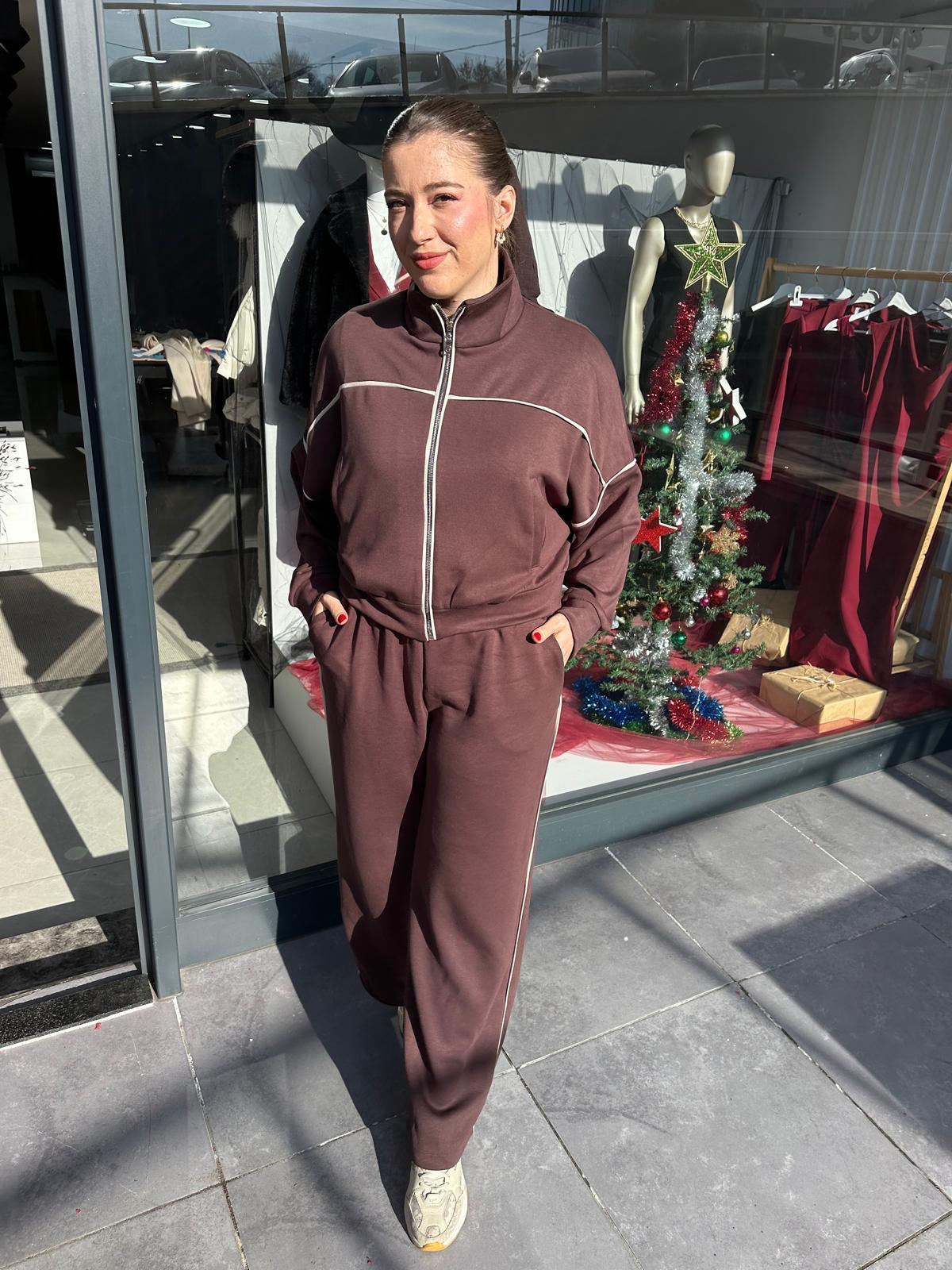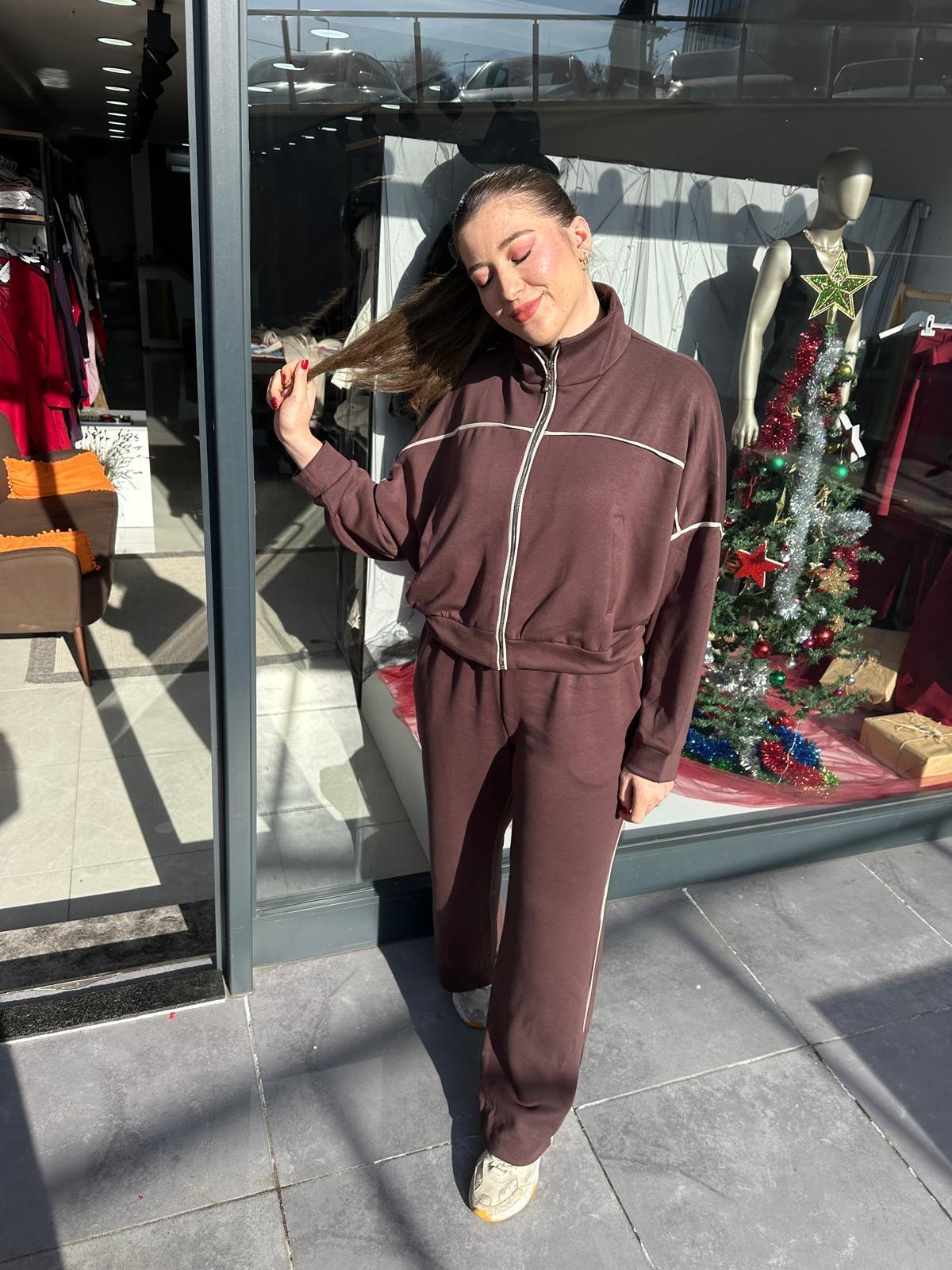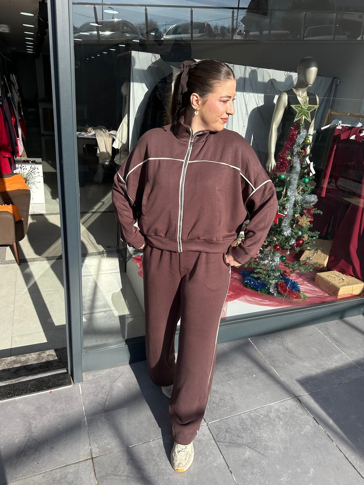 MODAL TENCEL BIYE DETAYLI KAHVERENGİ EŞOFMAN TAKIMI