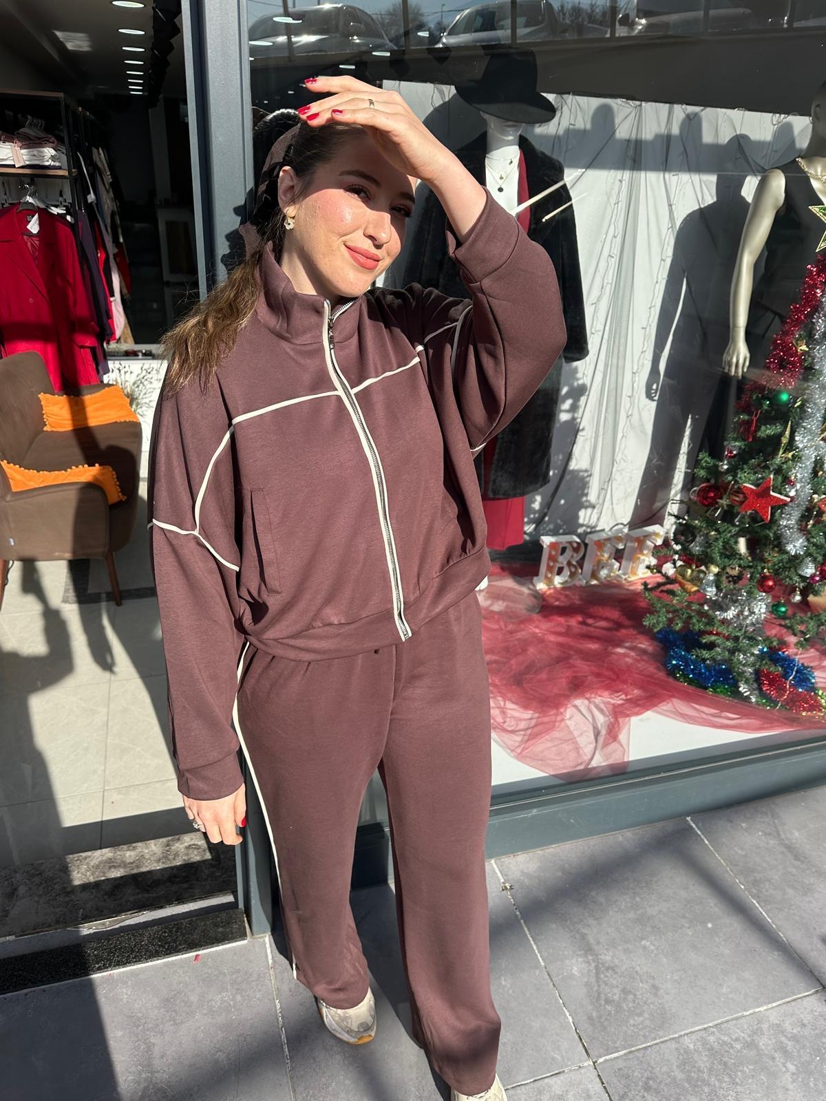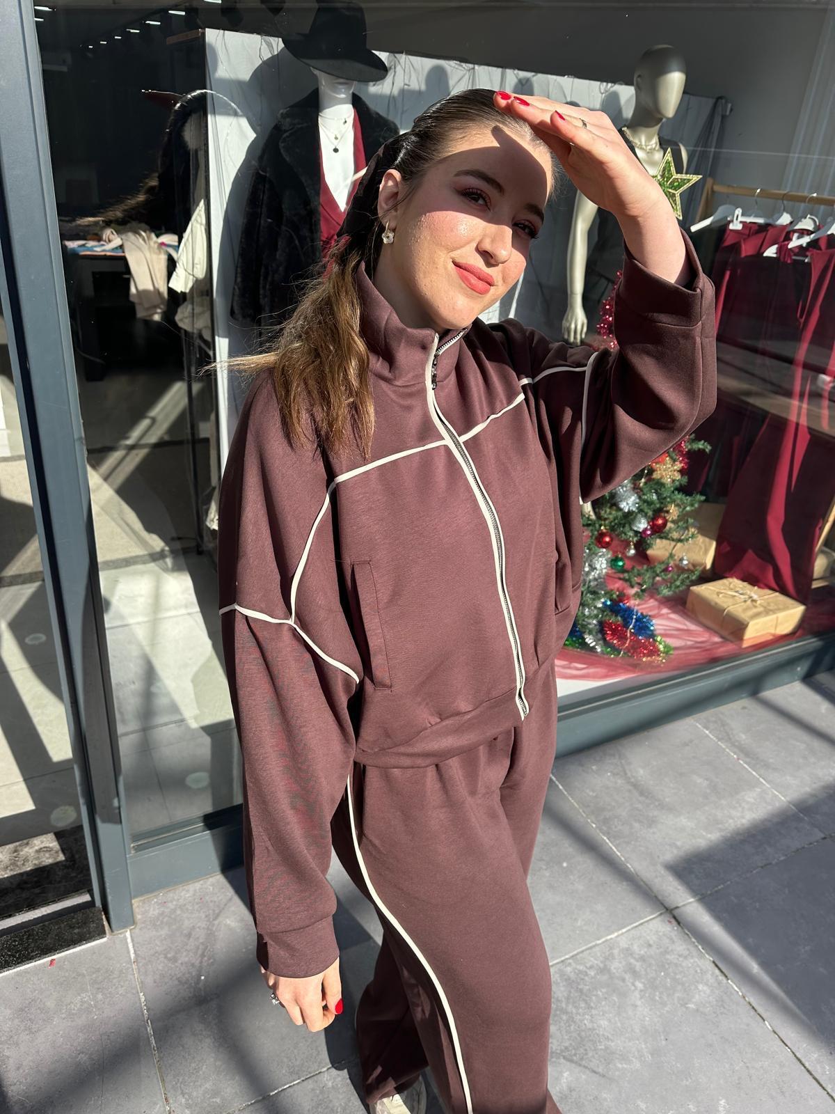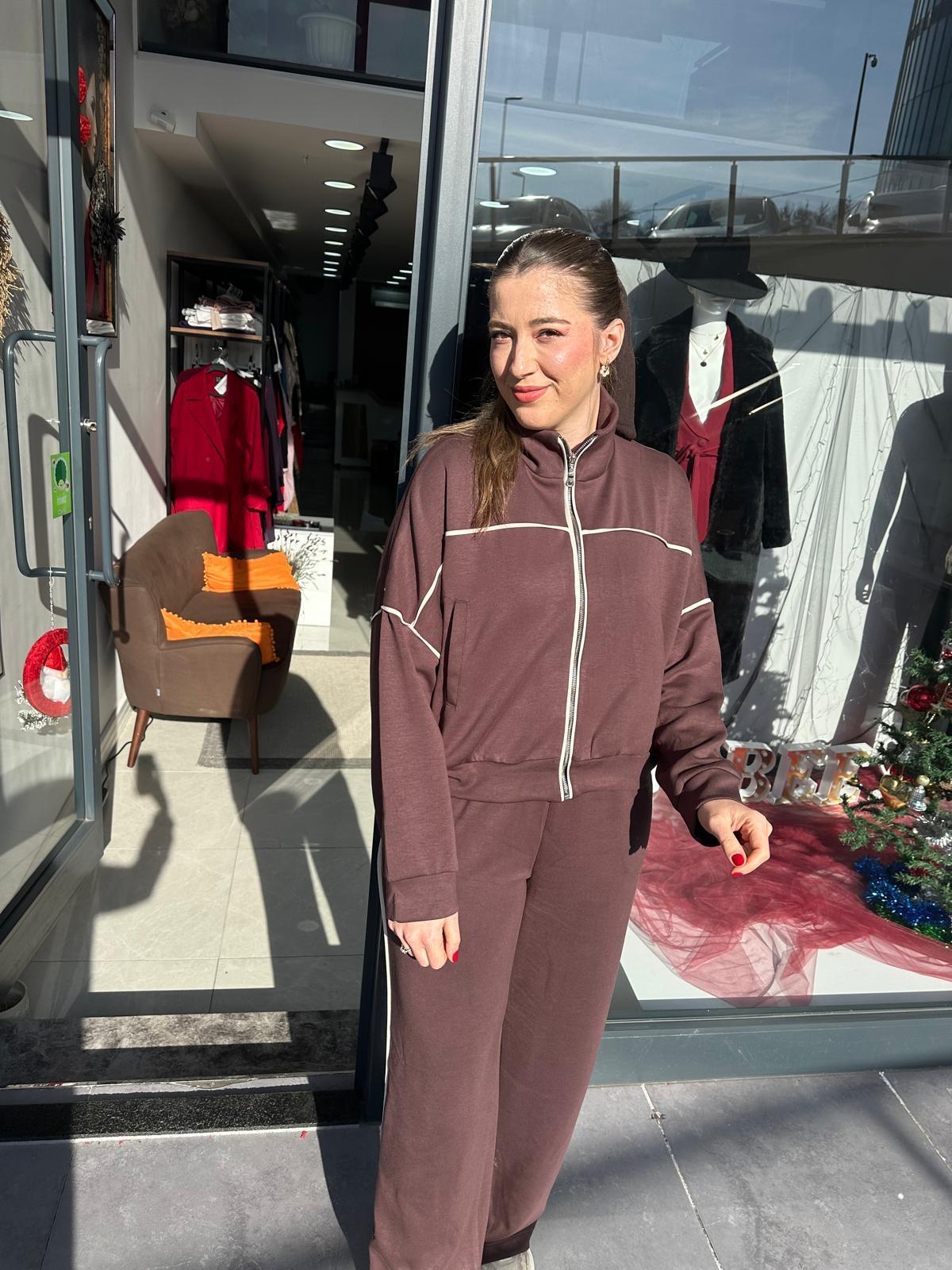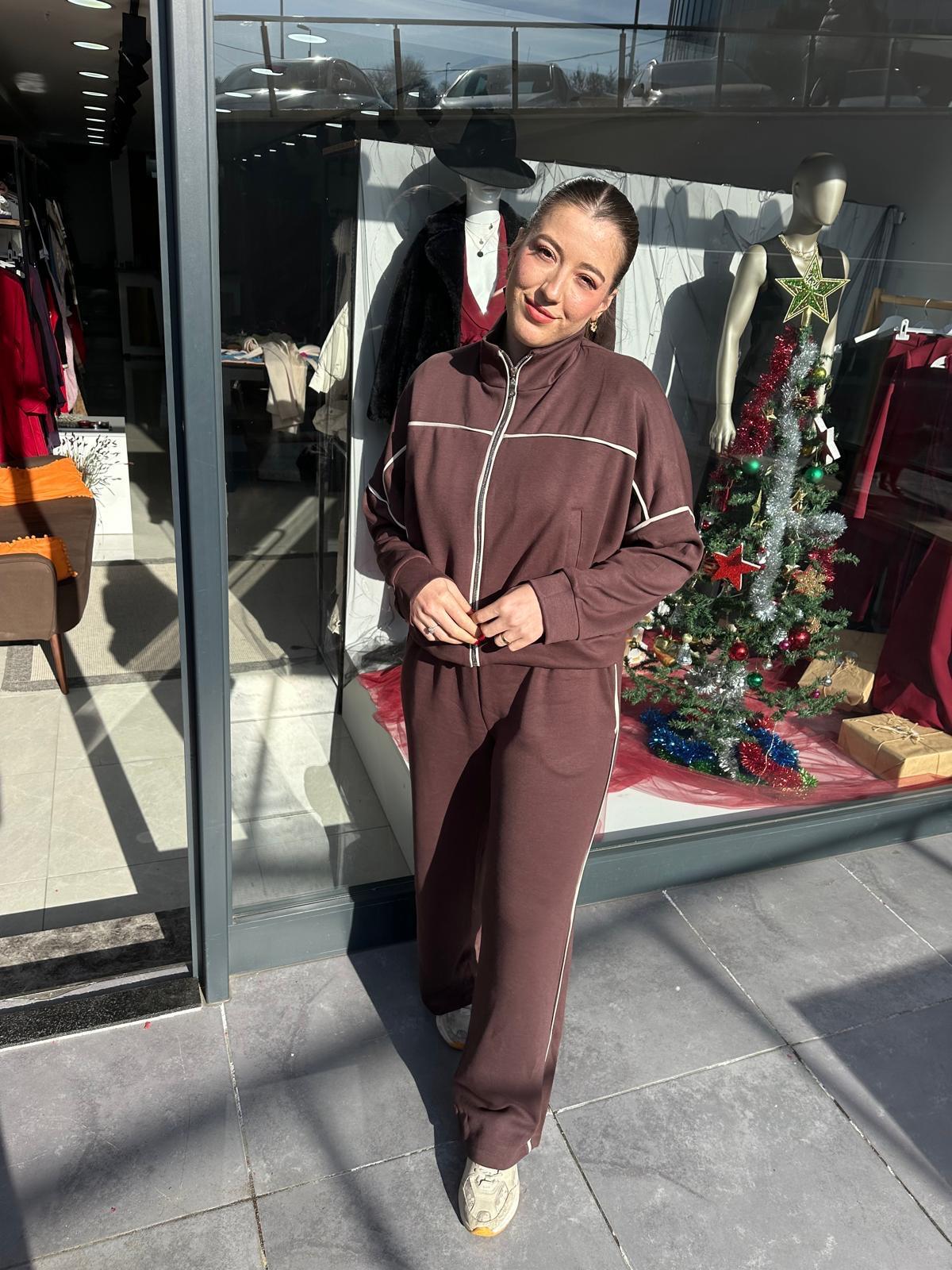 MODAL TENCEL BIYE DETAYLI KAHVERENGİ EŞOFMAN TAKIMI
