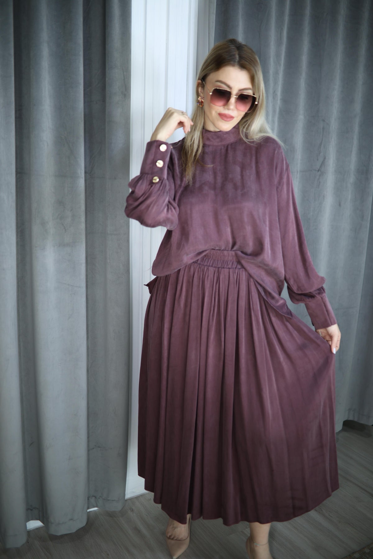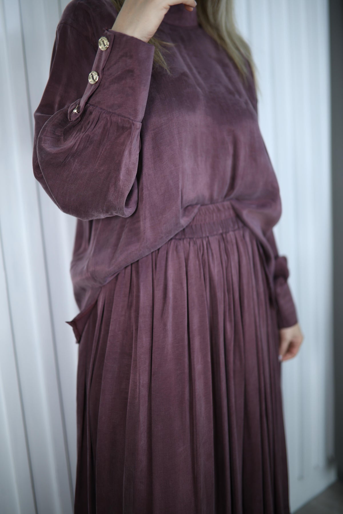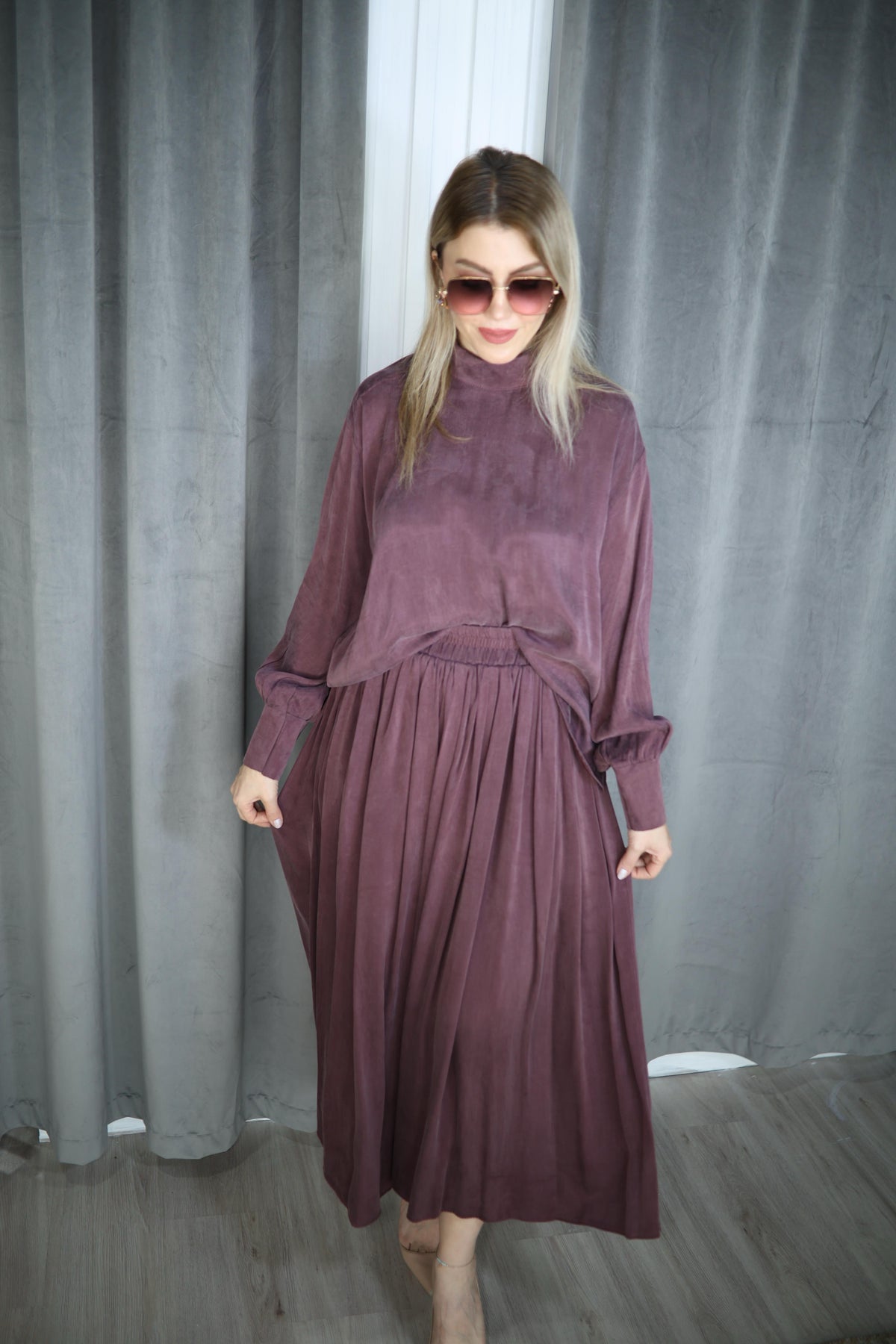 MÜRDÜM İPEK CUPRA KUMAŞ ETEK BLUZ TAKIM