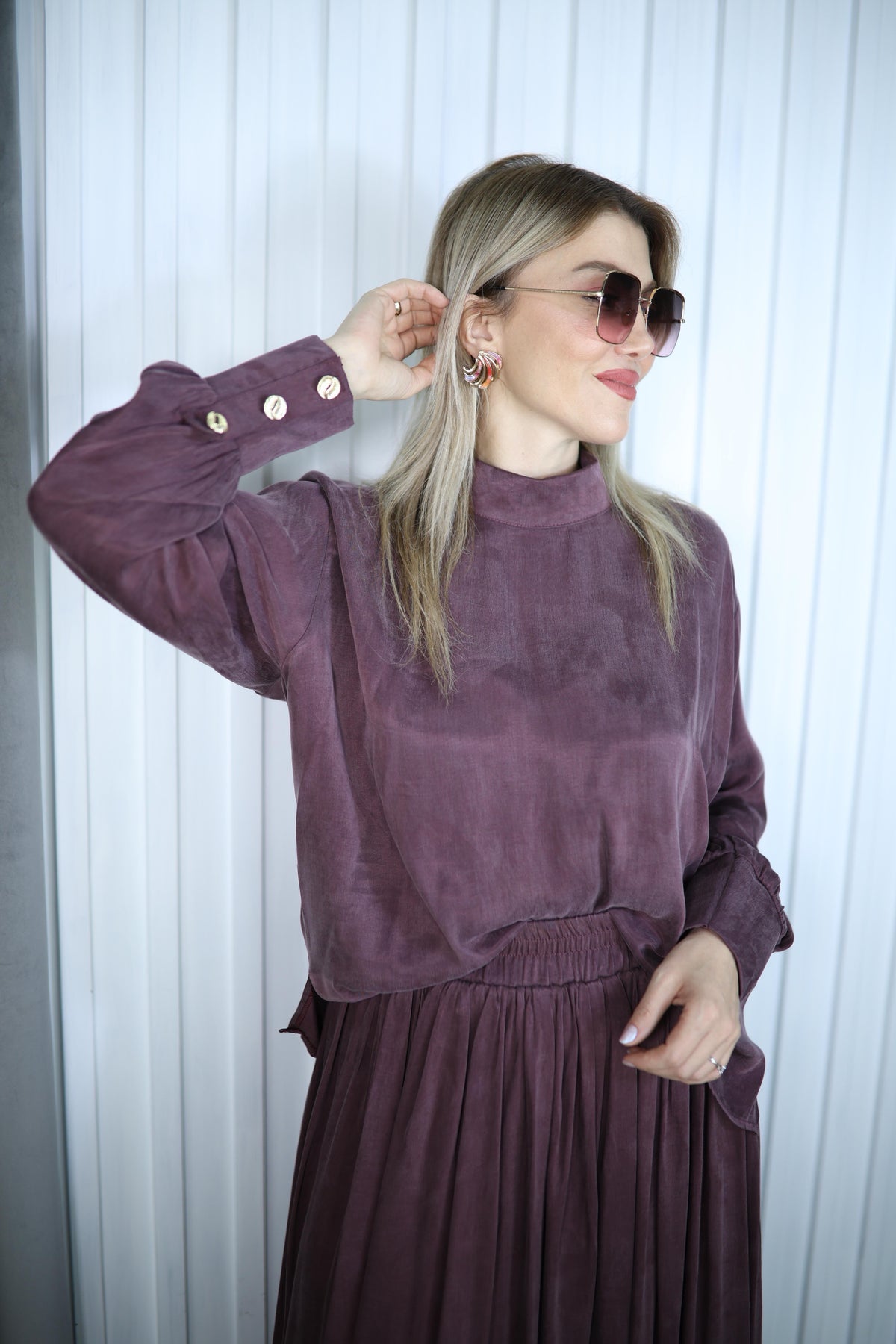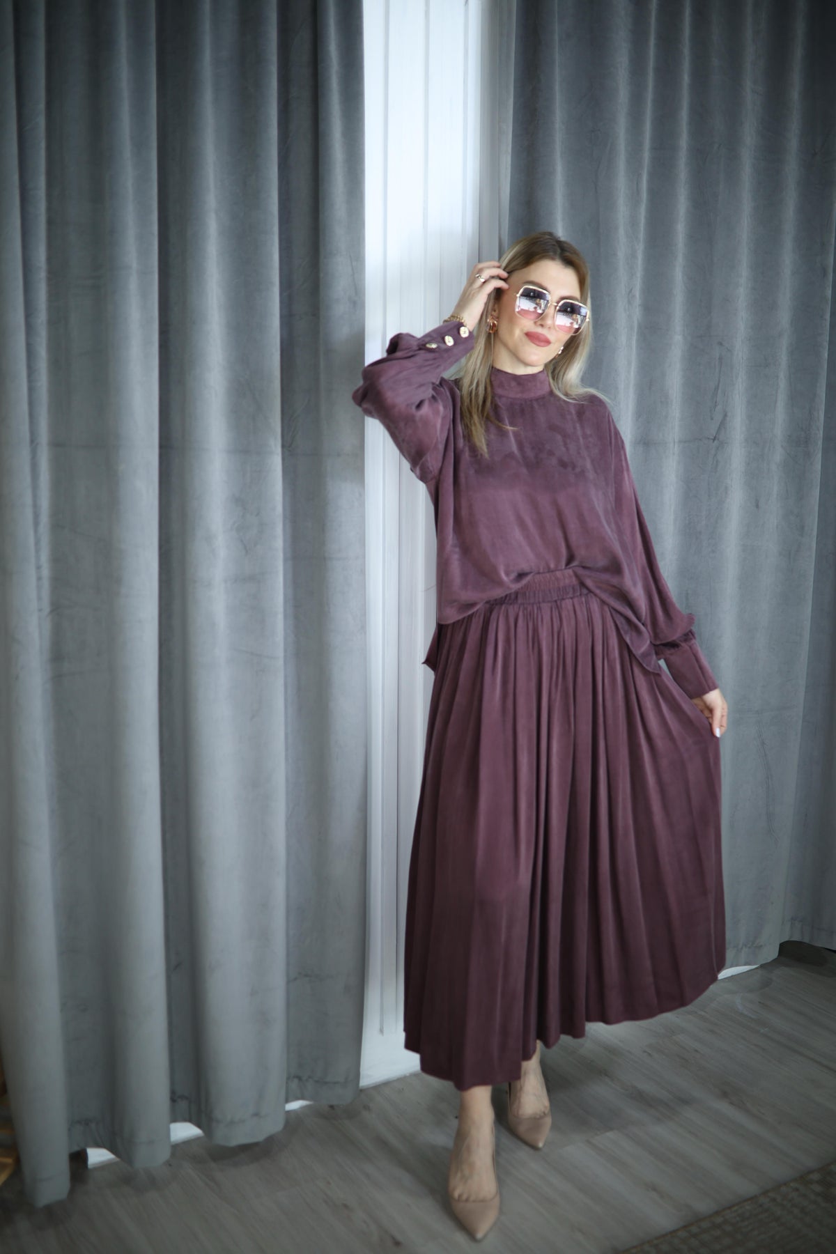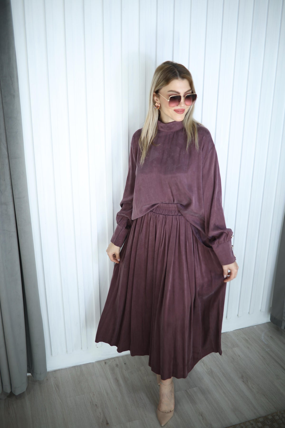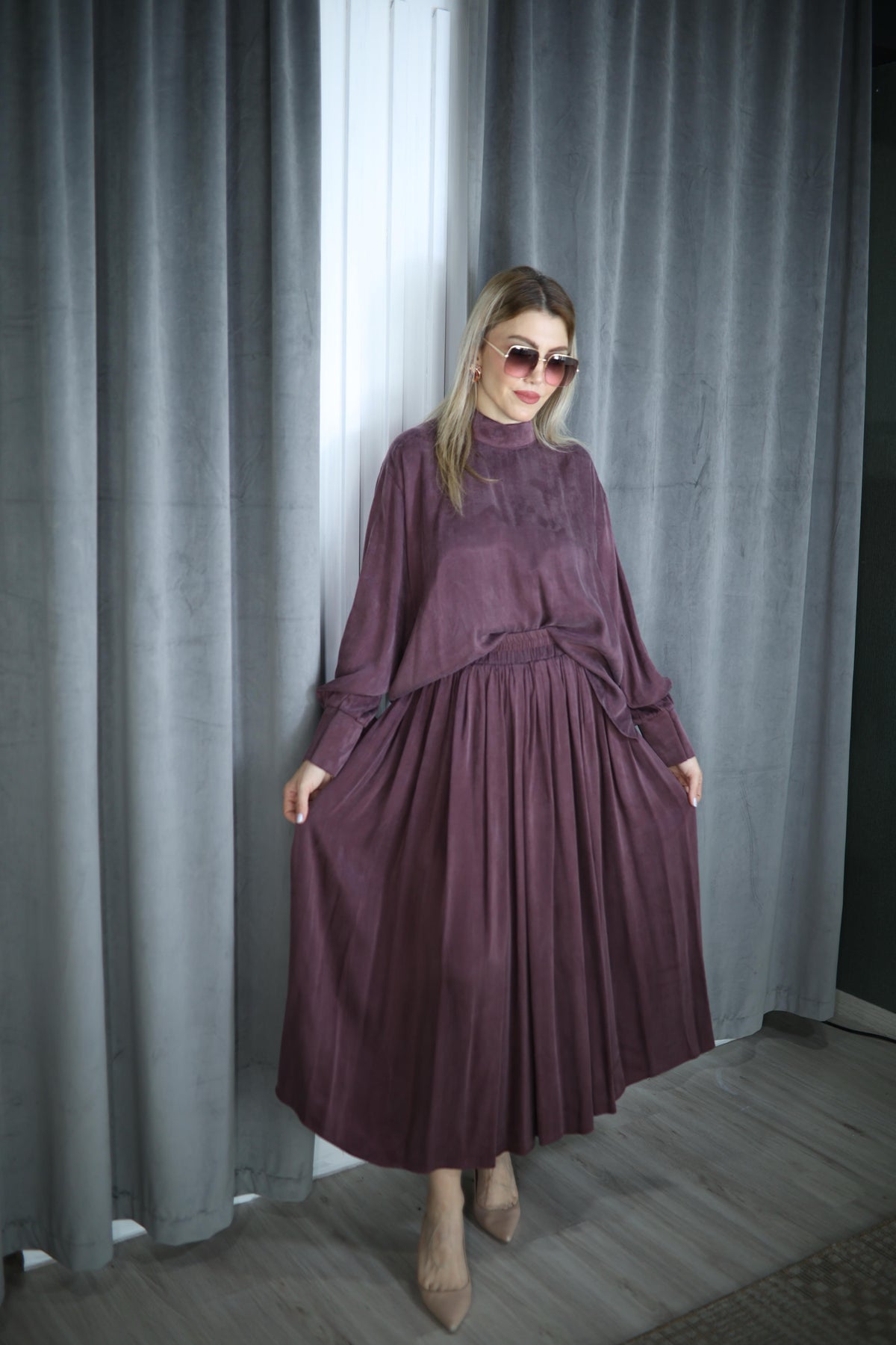 MÜRDÜM İPEK CUPRA KUMAŞ ETEK BLUZ TAKIM