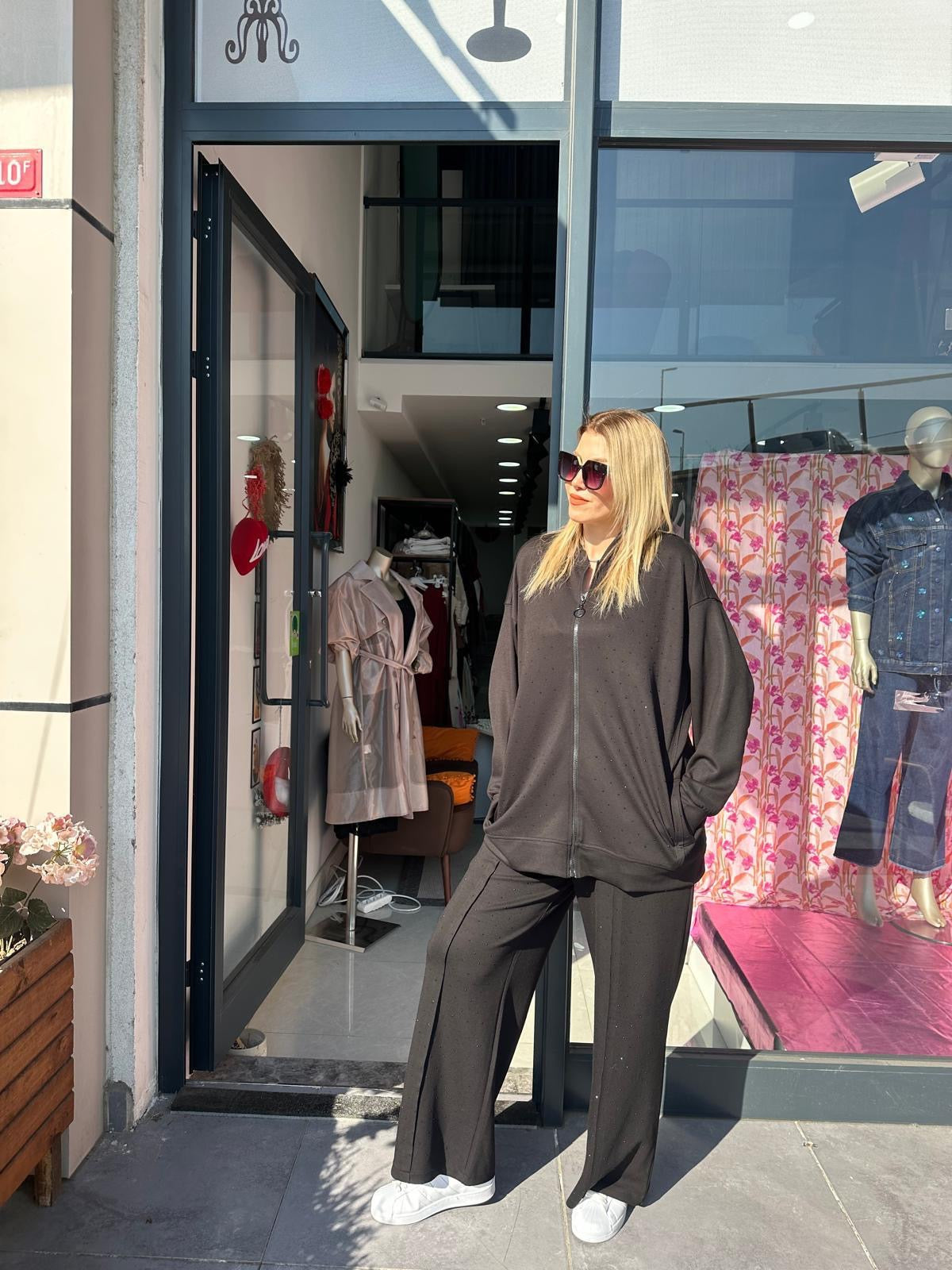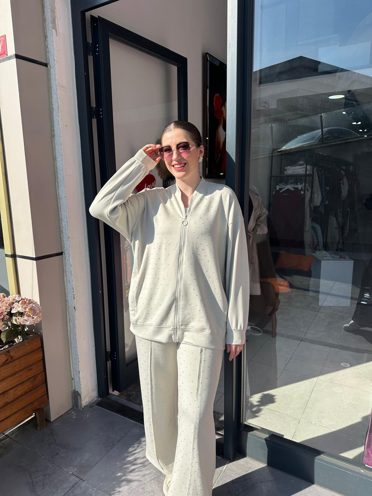 Taş İşlemeli Modal Tencel Kumaş Eşofman Takımları