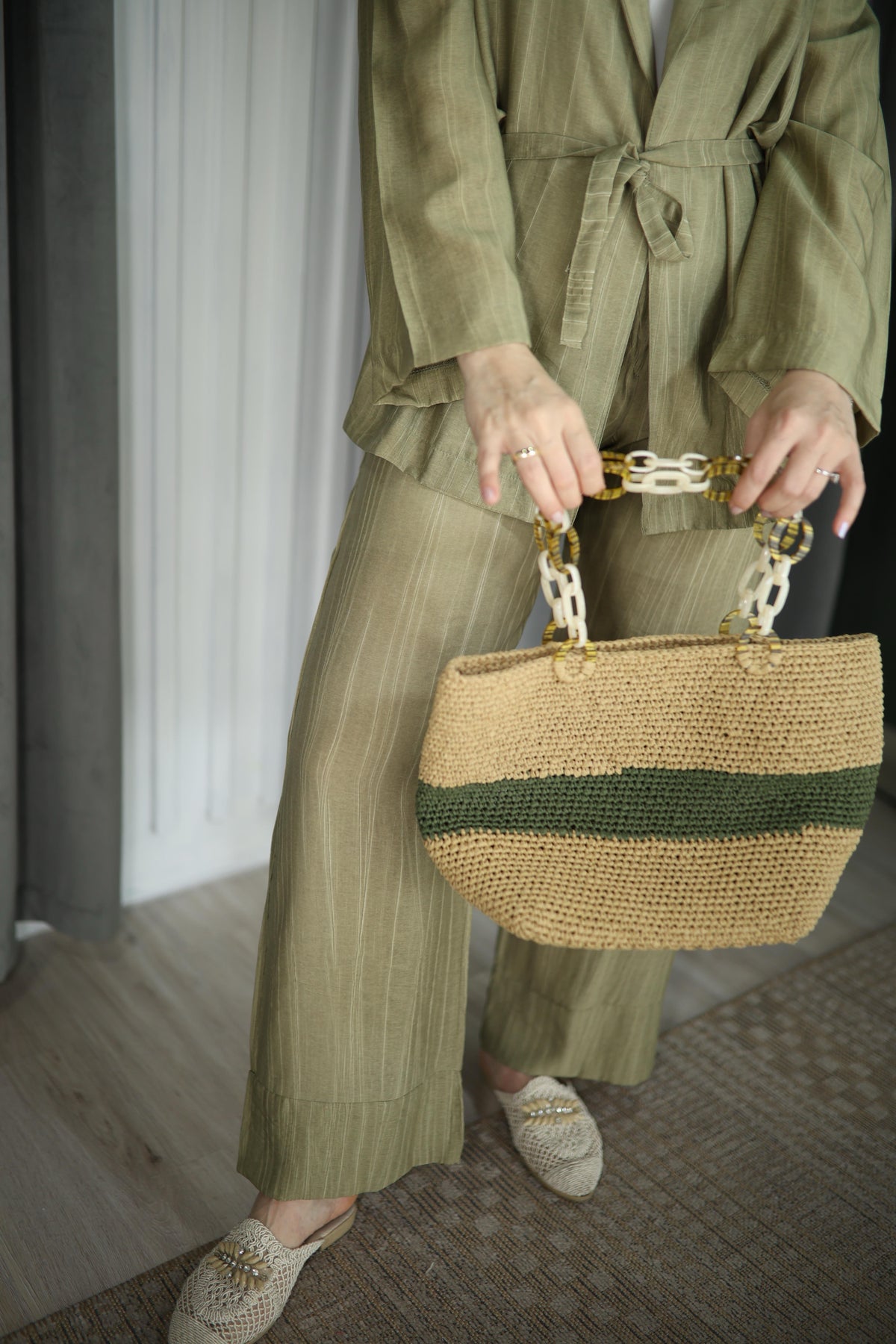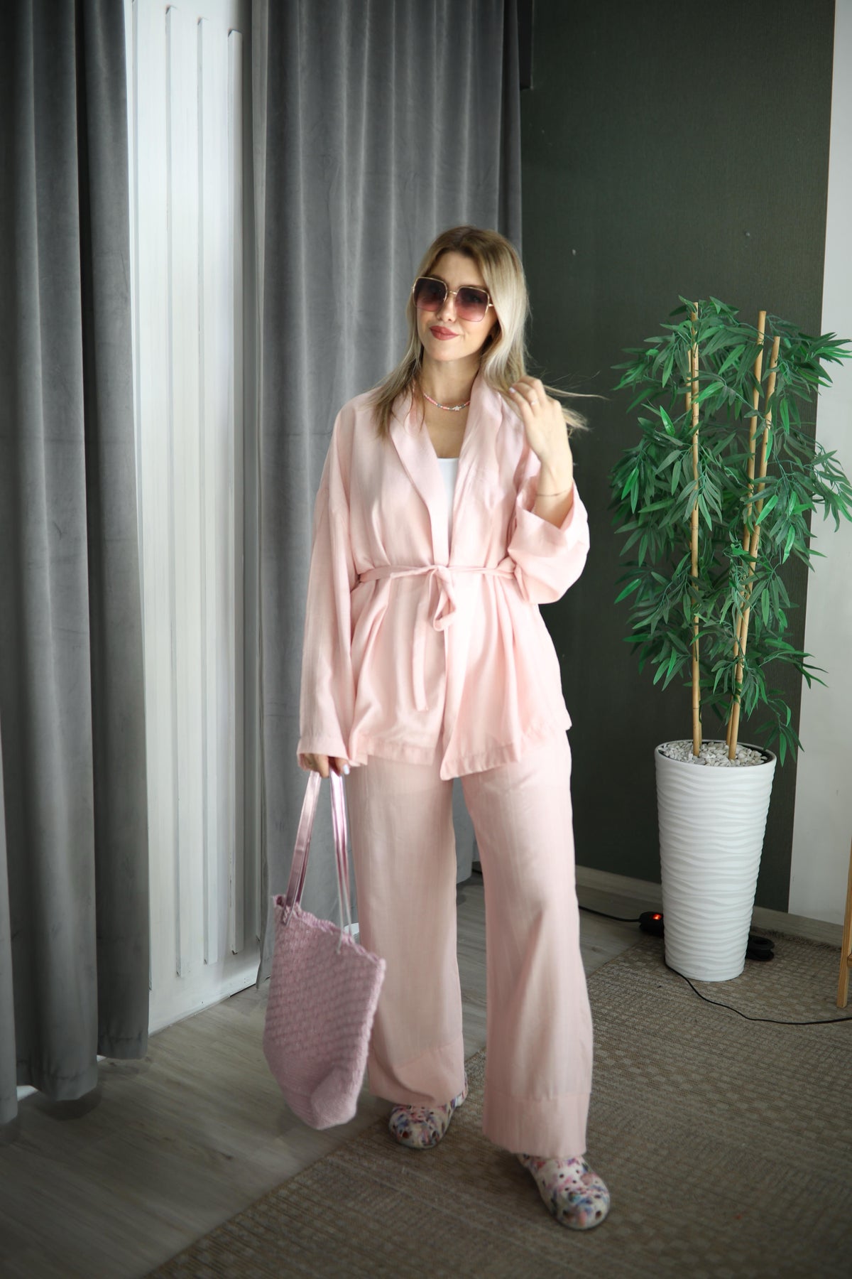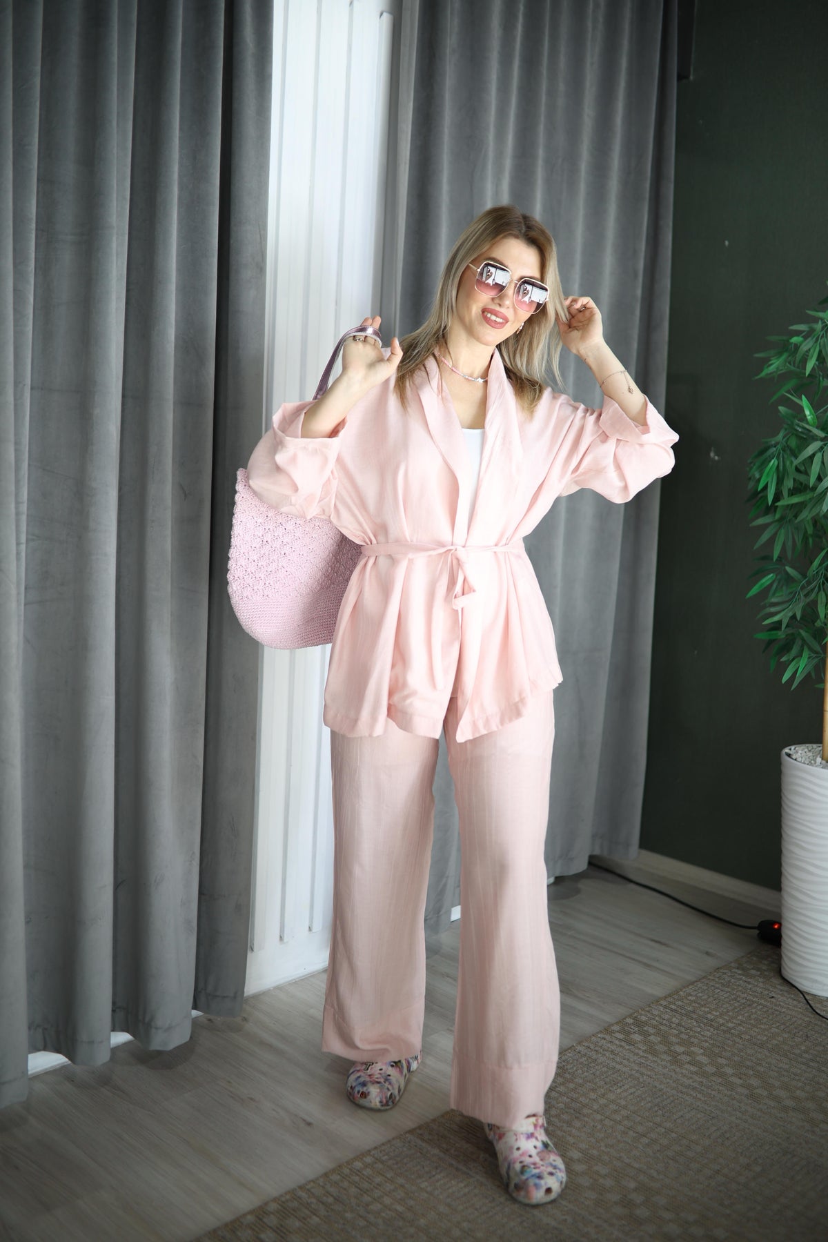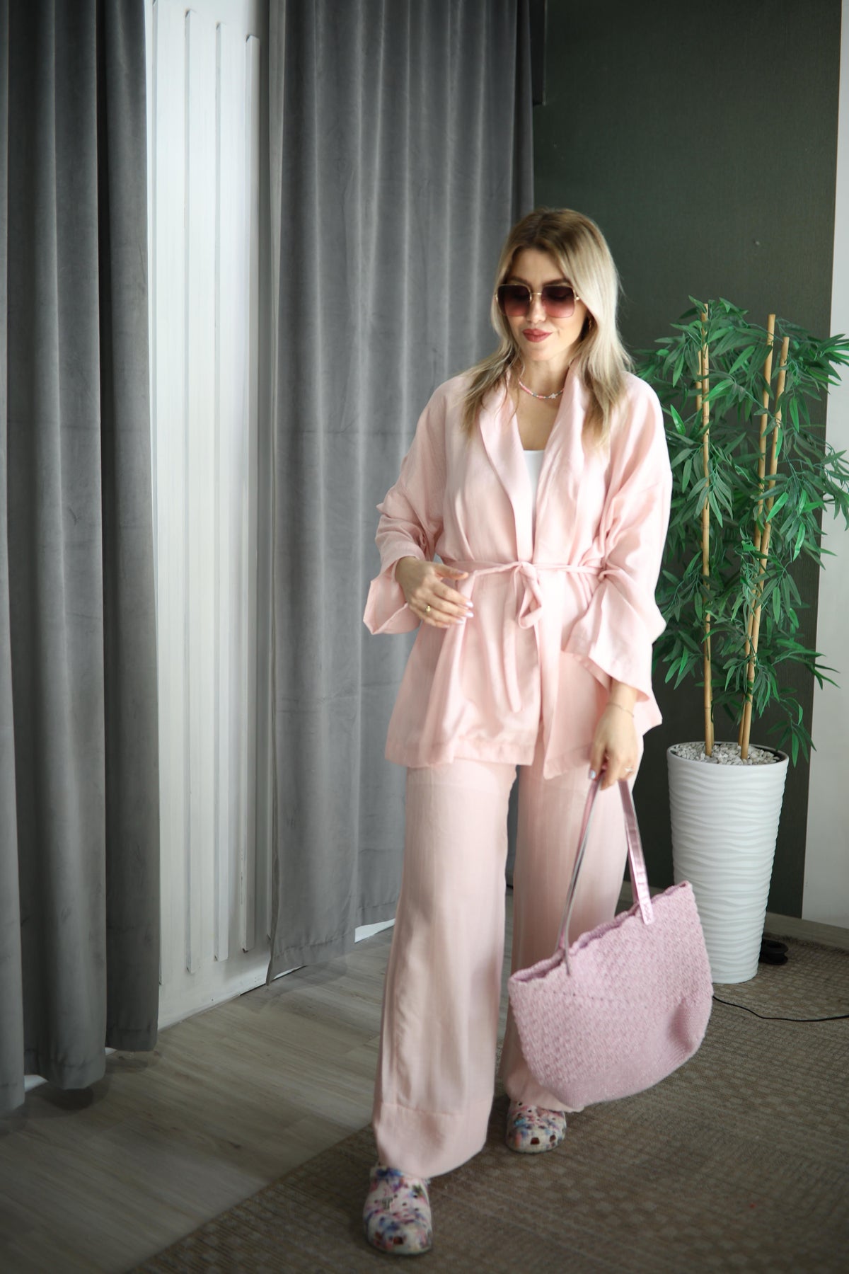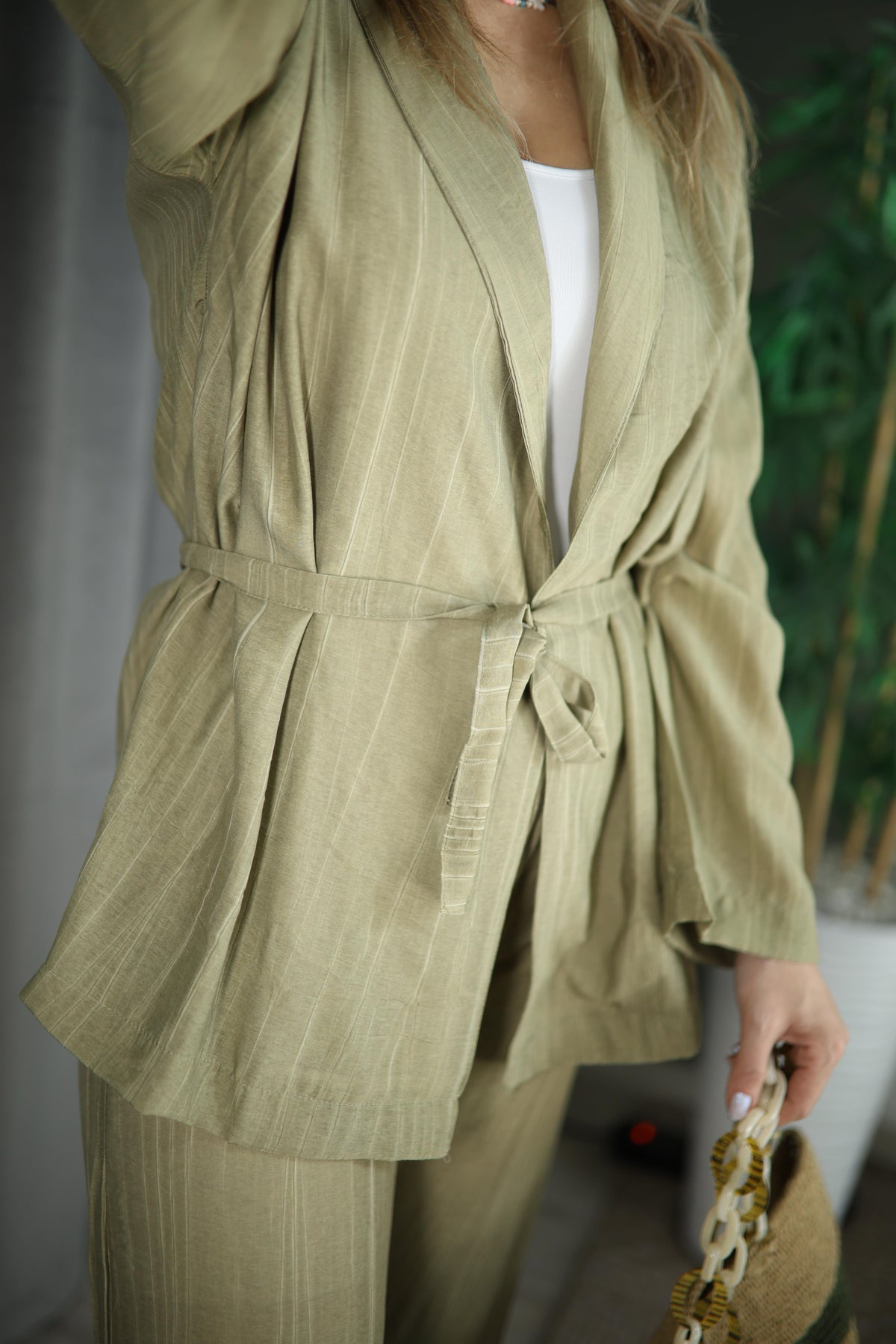 TENCEL ÇİZGİLİ PARÇA BOYAMA KİMONO TAKIM