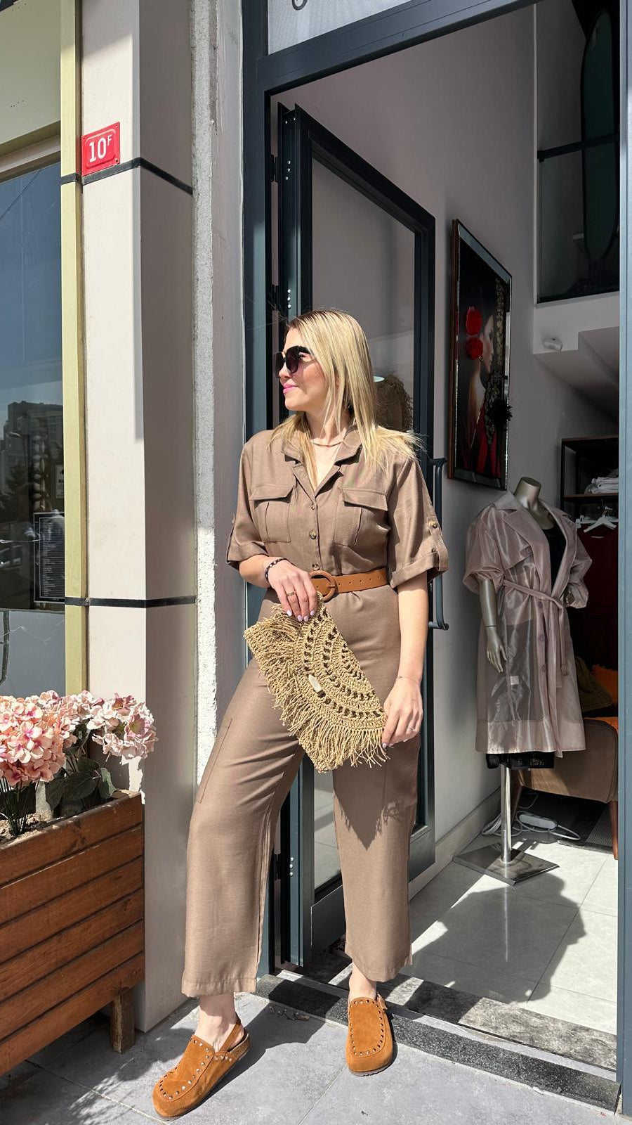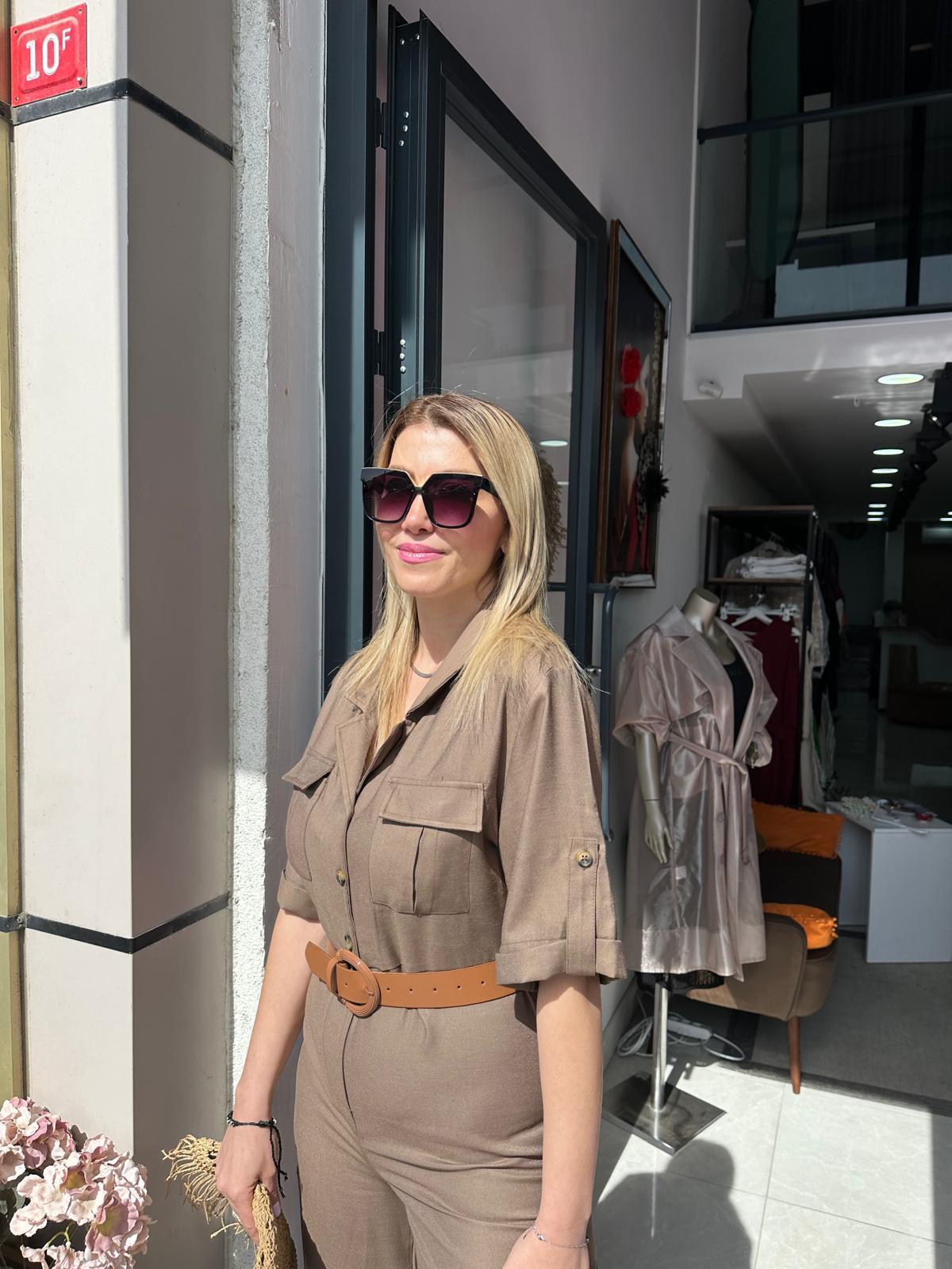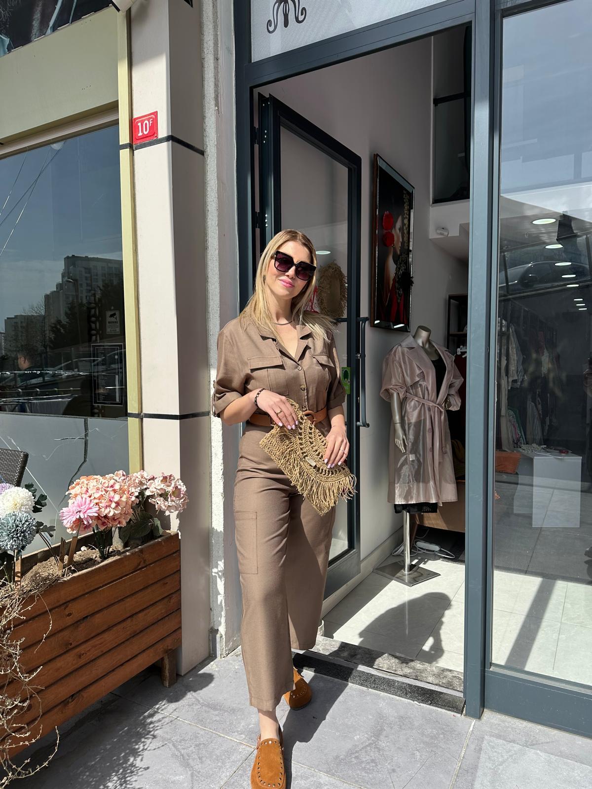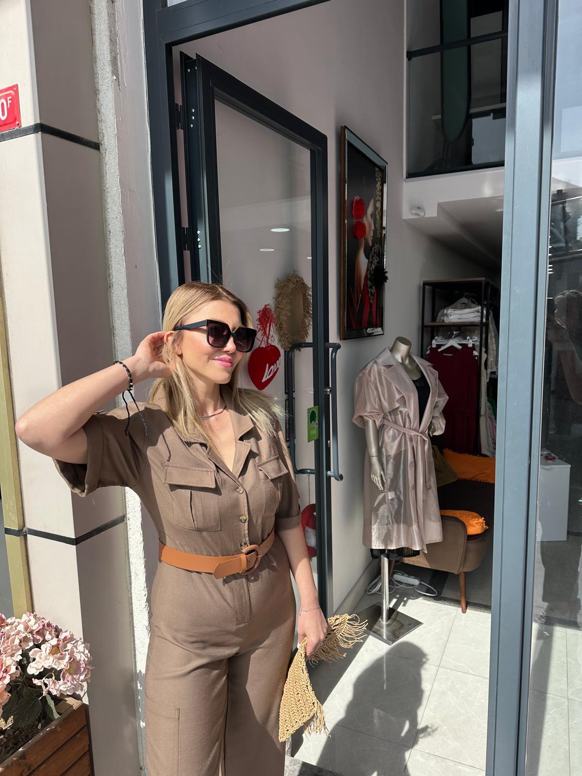 KAHVERENGİ DERİ KEMERLİ SPOR TULUM