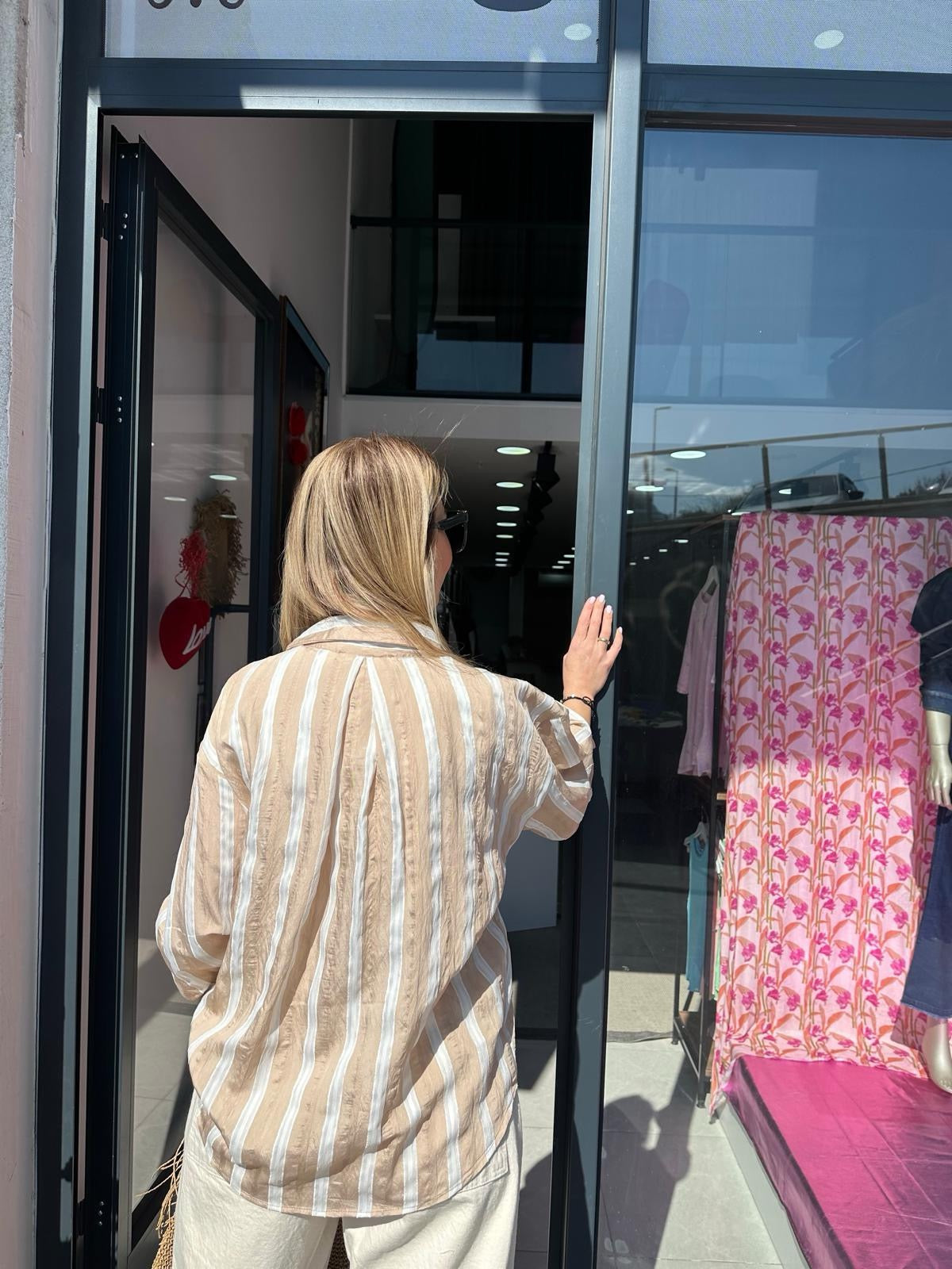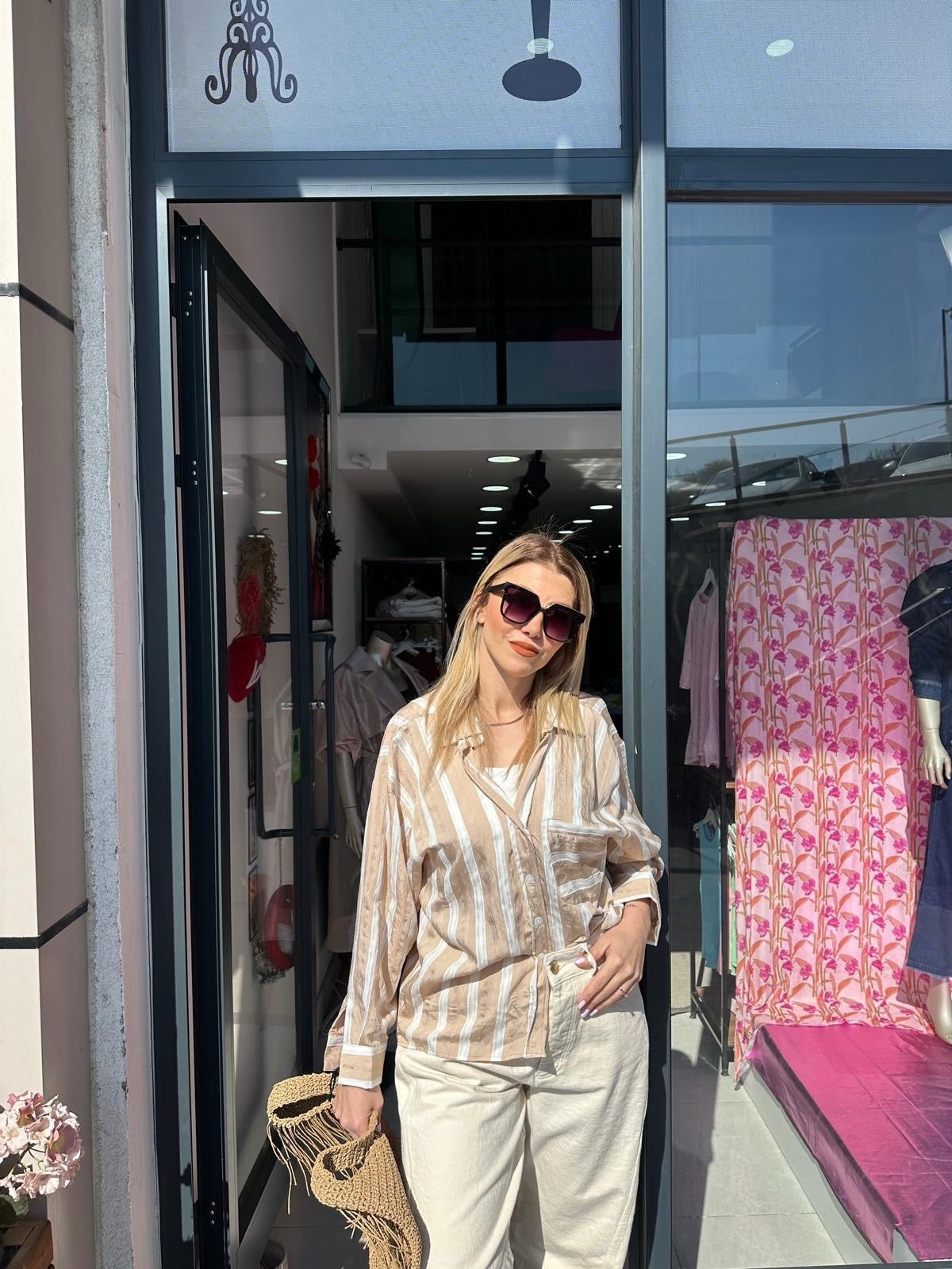 BEJ CİZGİLİ SALAŞ GÖMLEK