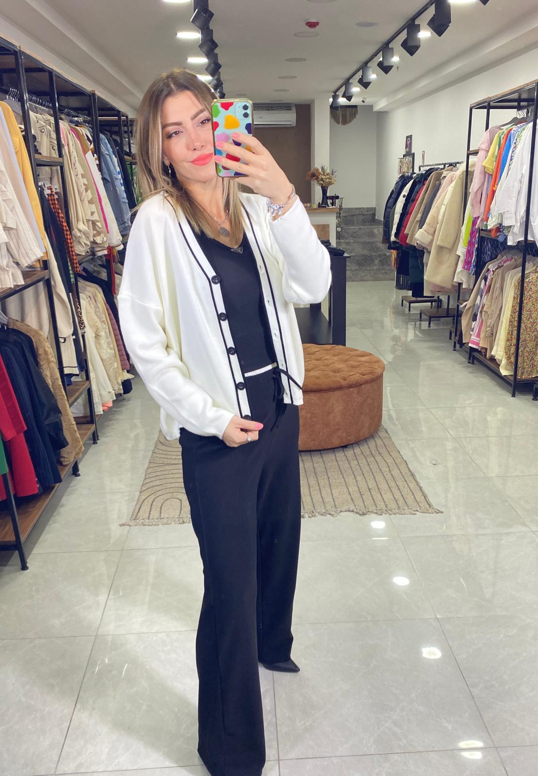 Beyaz-Siyah Çizgili Hırka