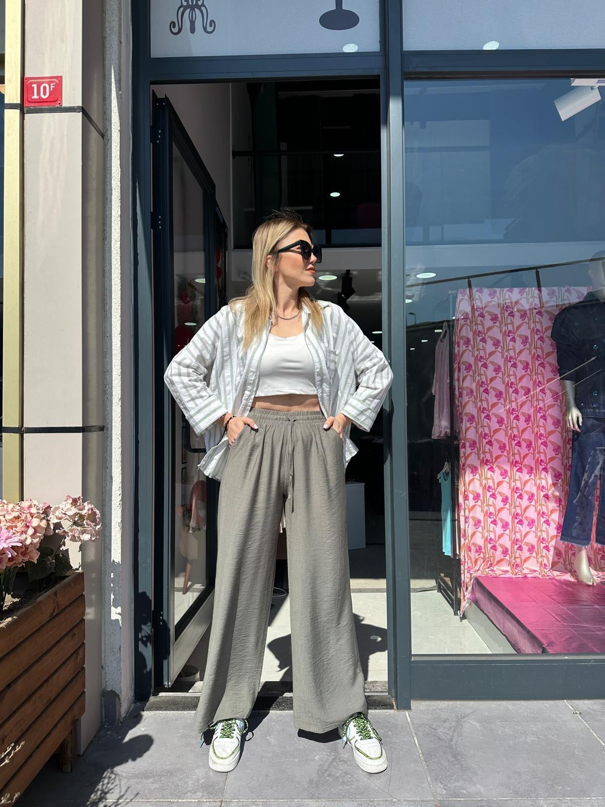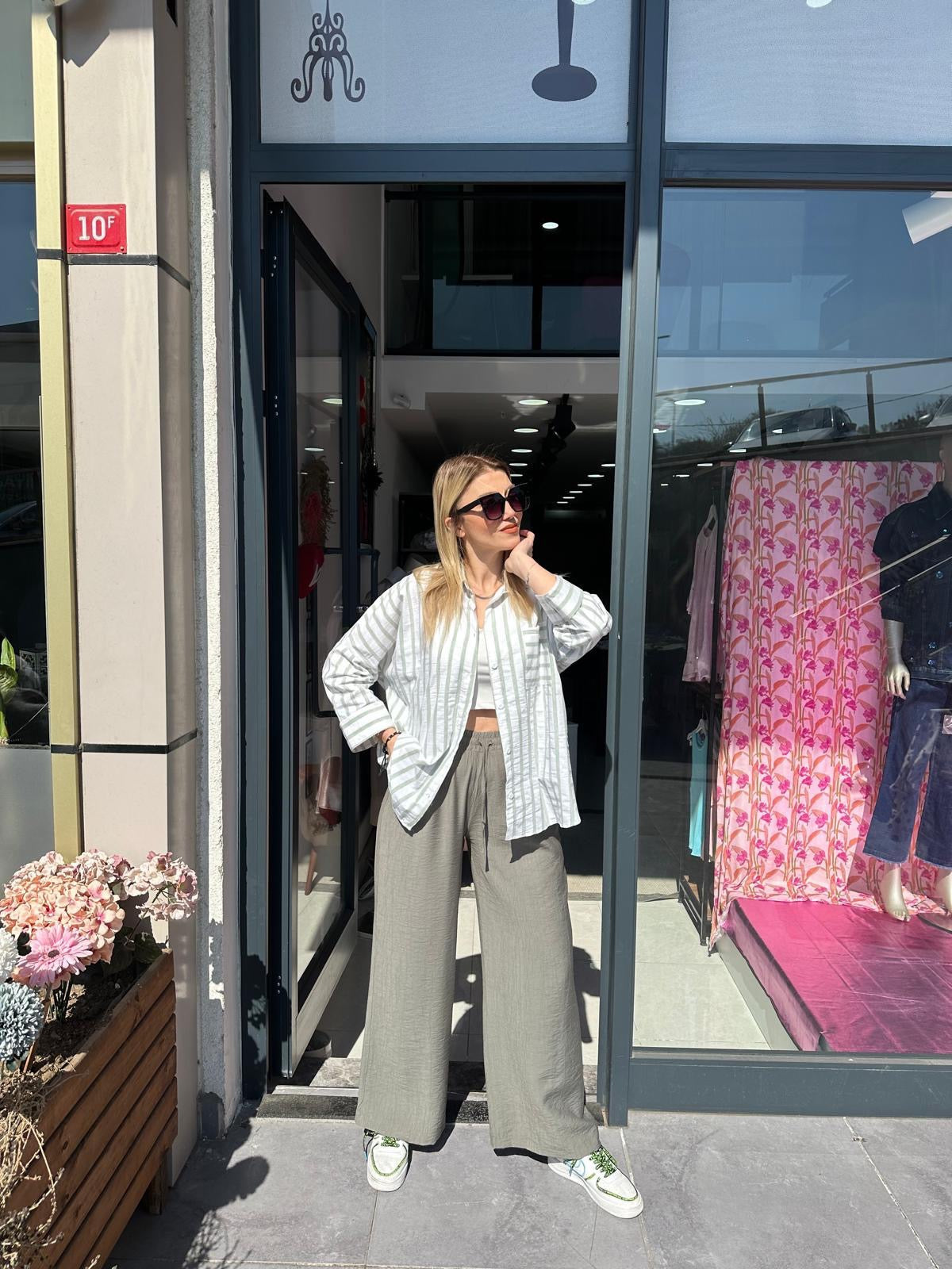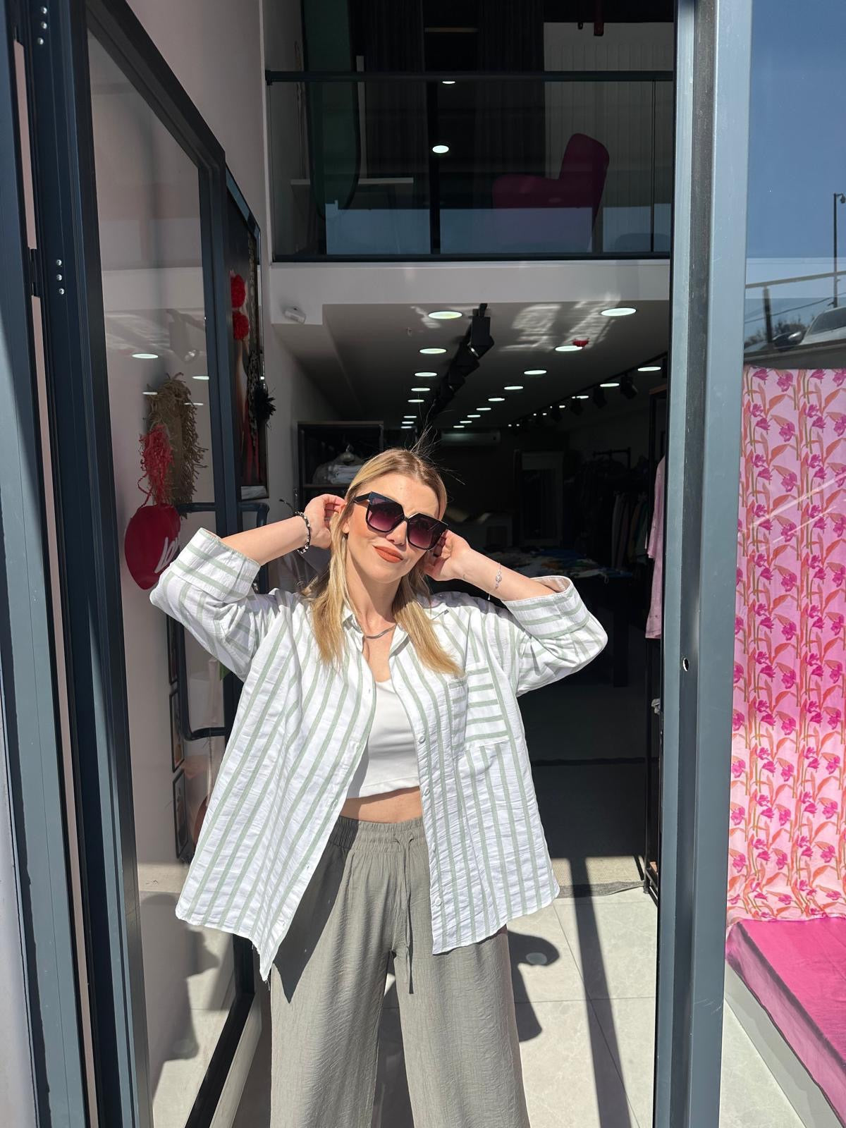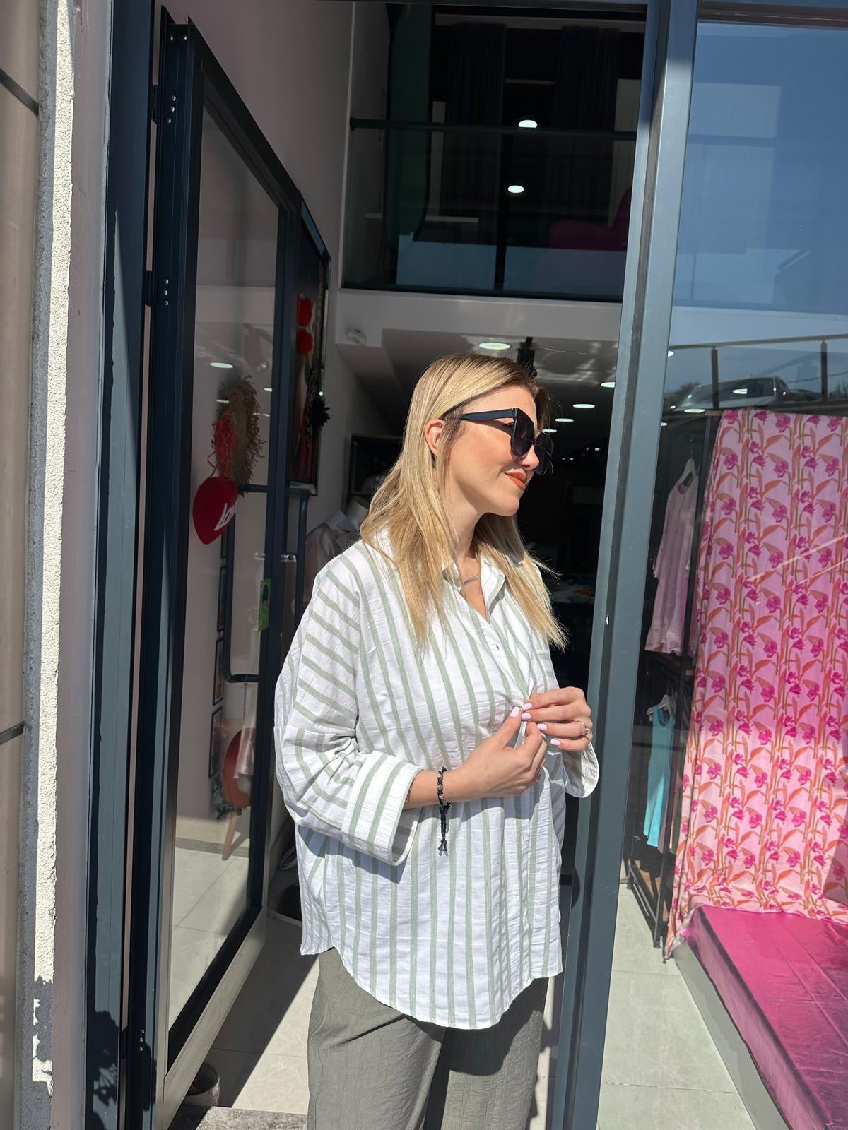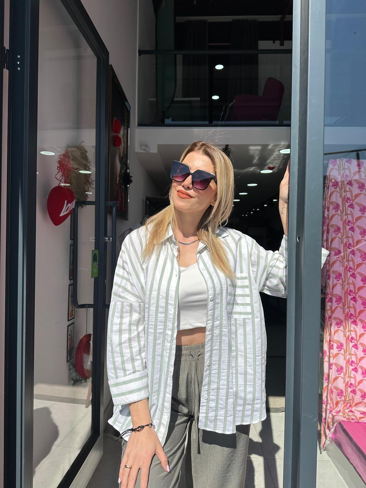 BEYAZ YEŞİL ÇİZGİLİ SALAŞ GÖMLEK