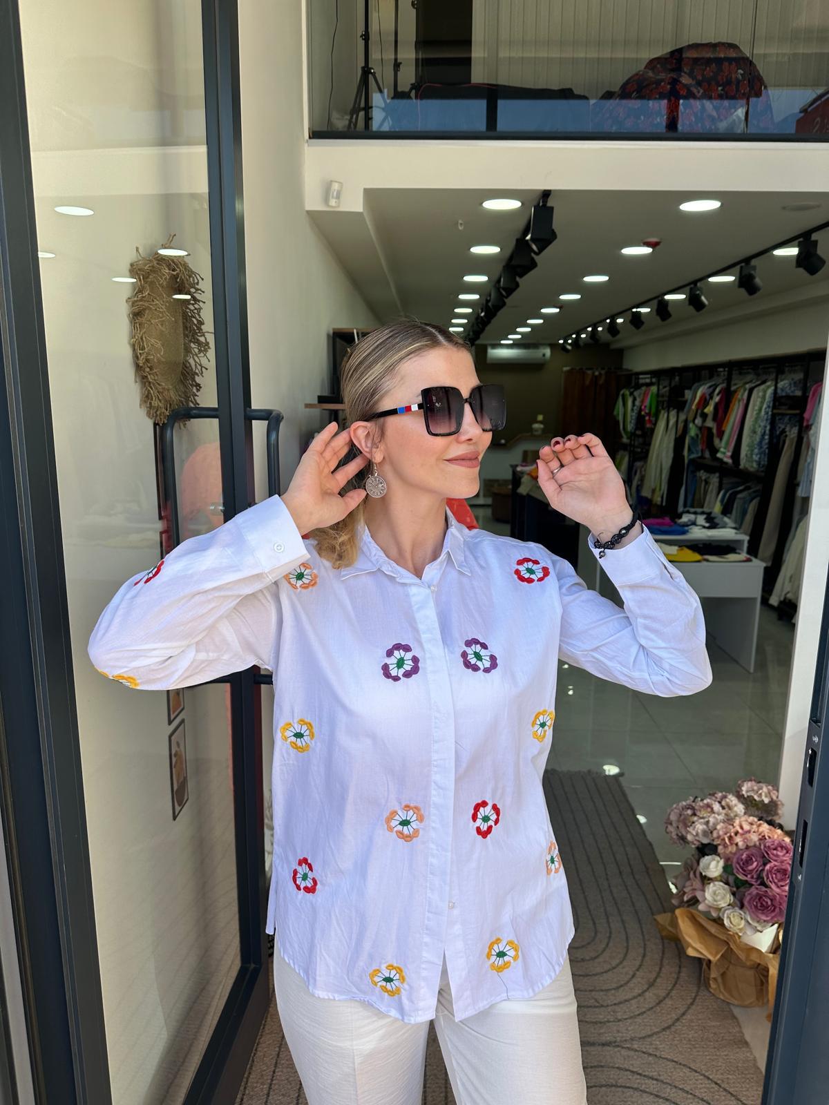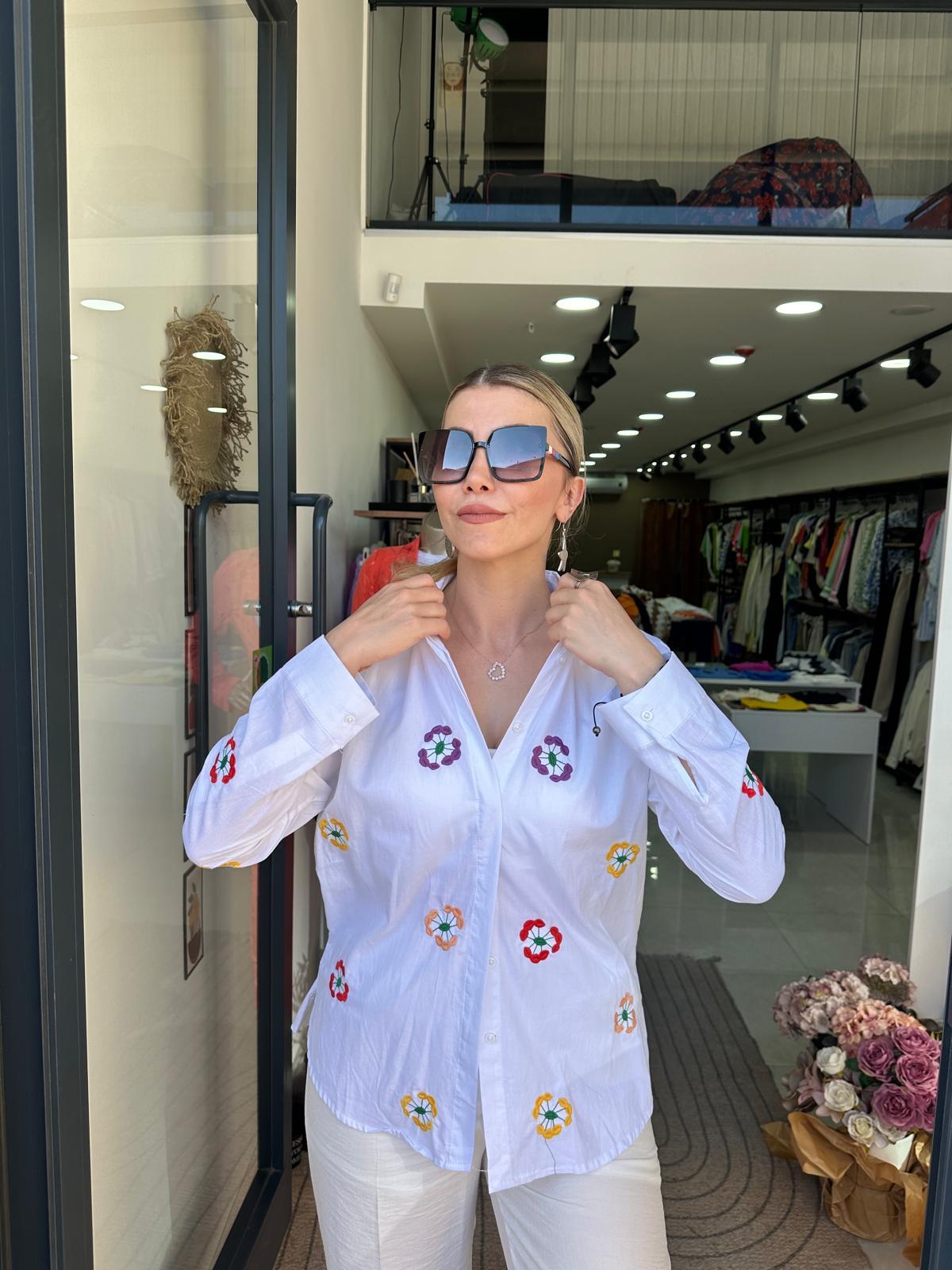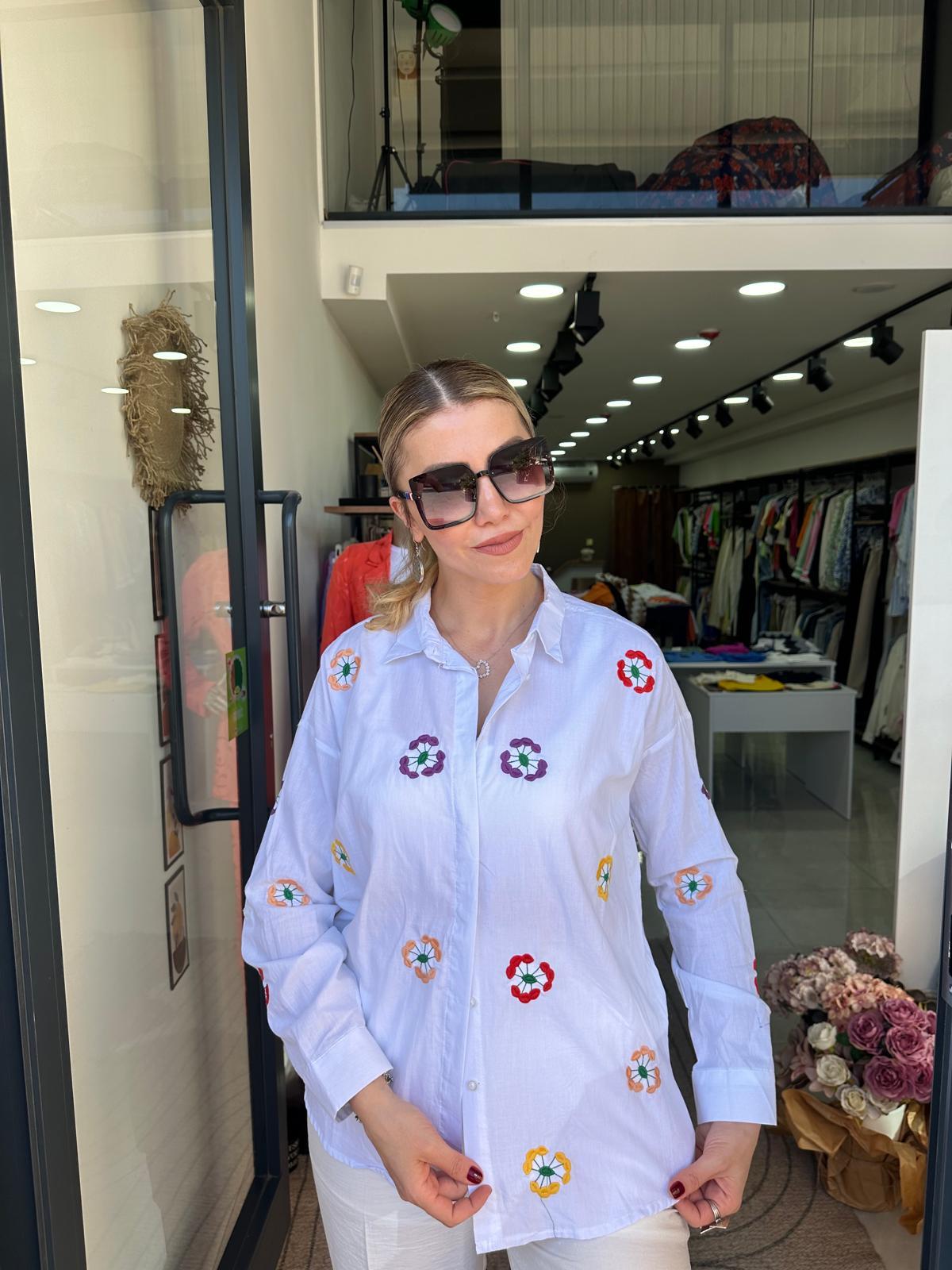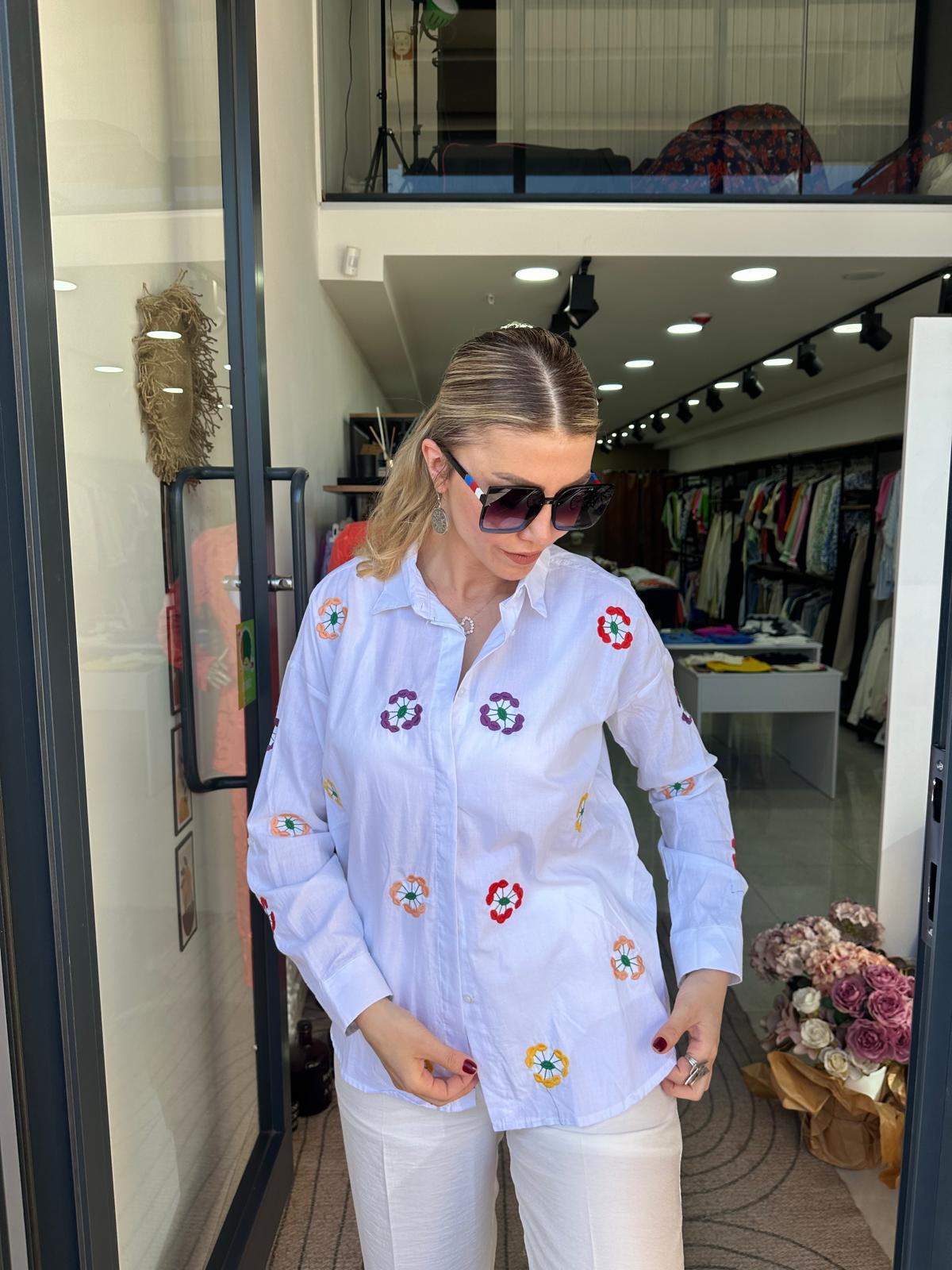 Çiçek Nakış Detaylı Gömlek