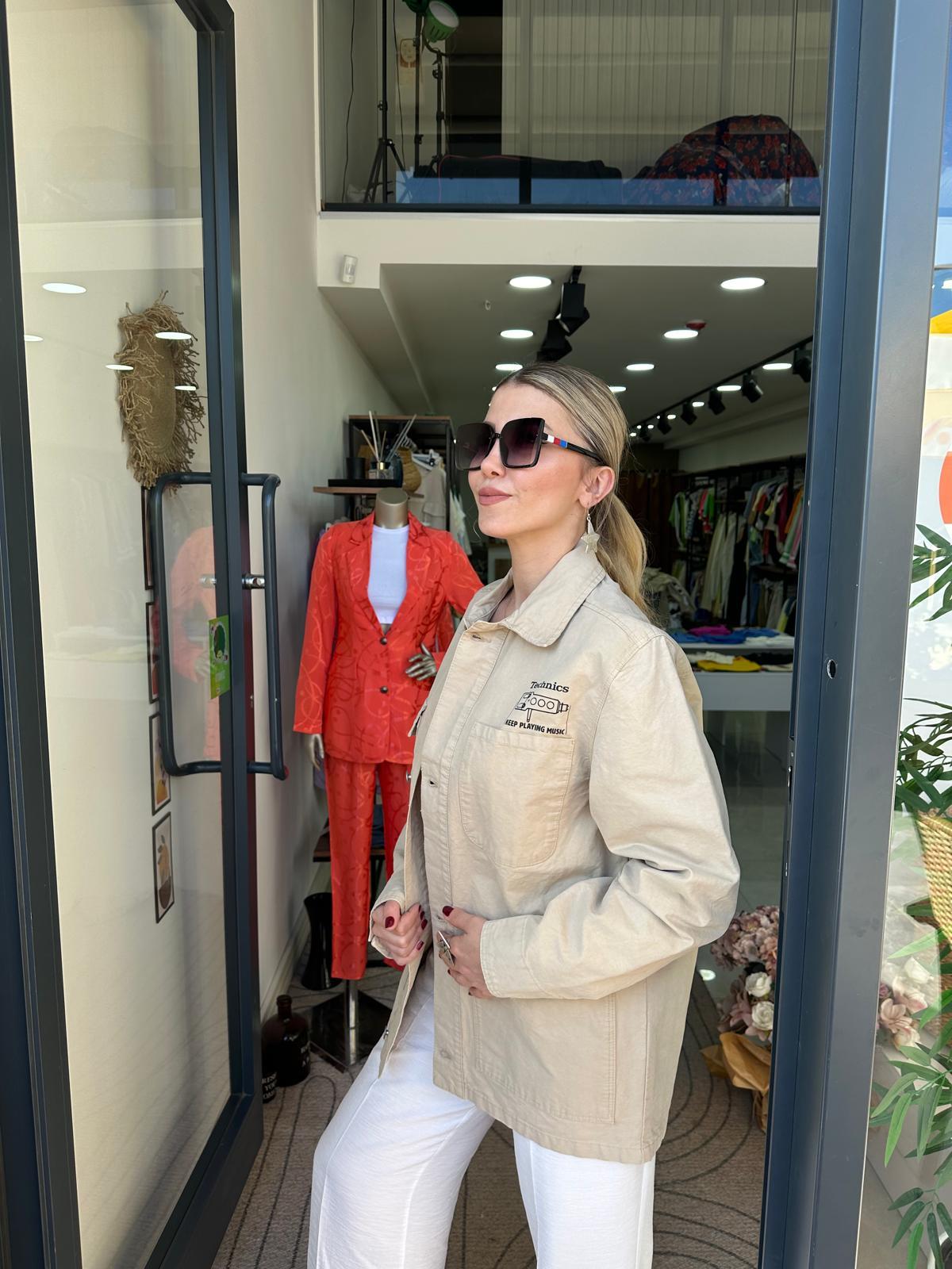 Gabardin Baskılı Ceket