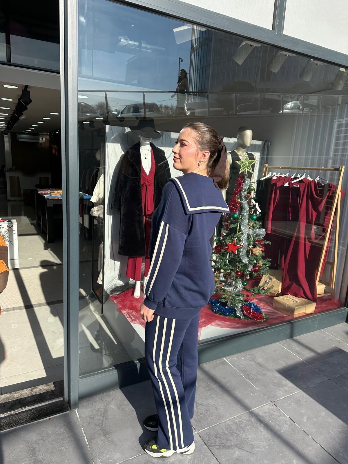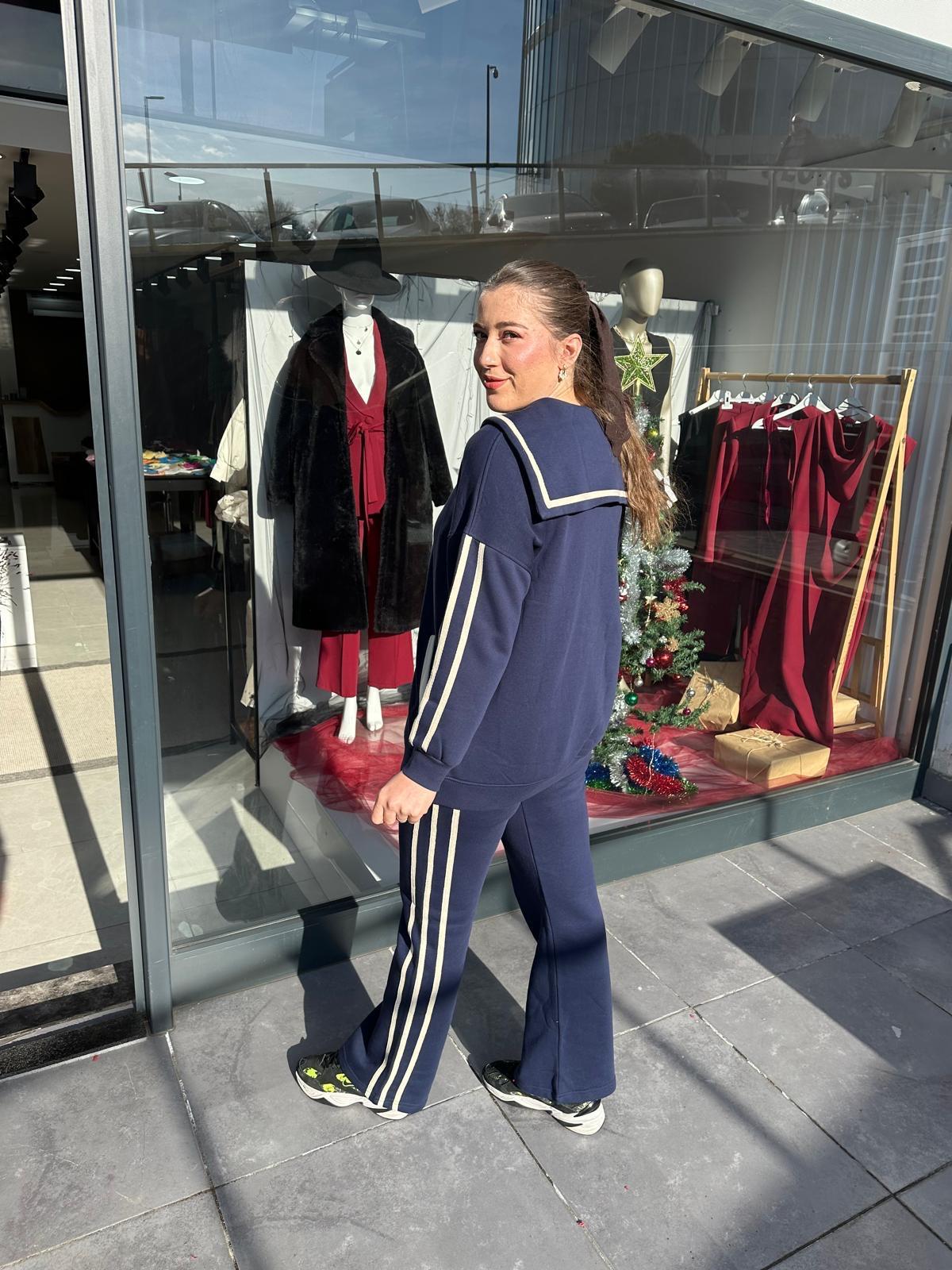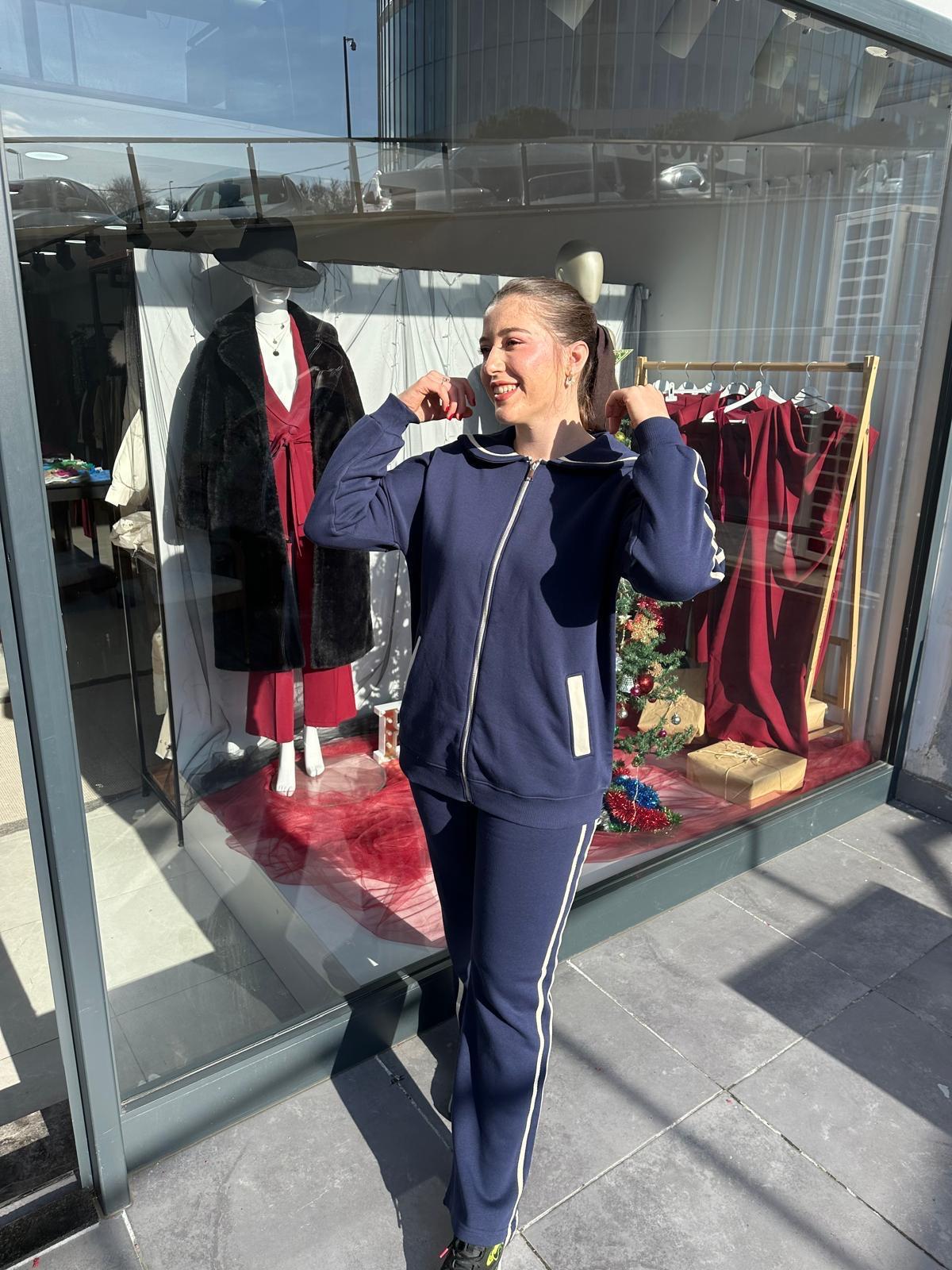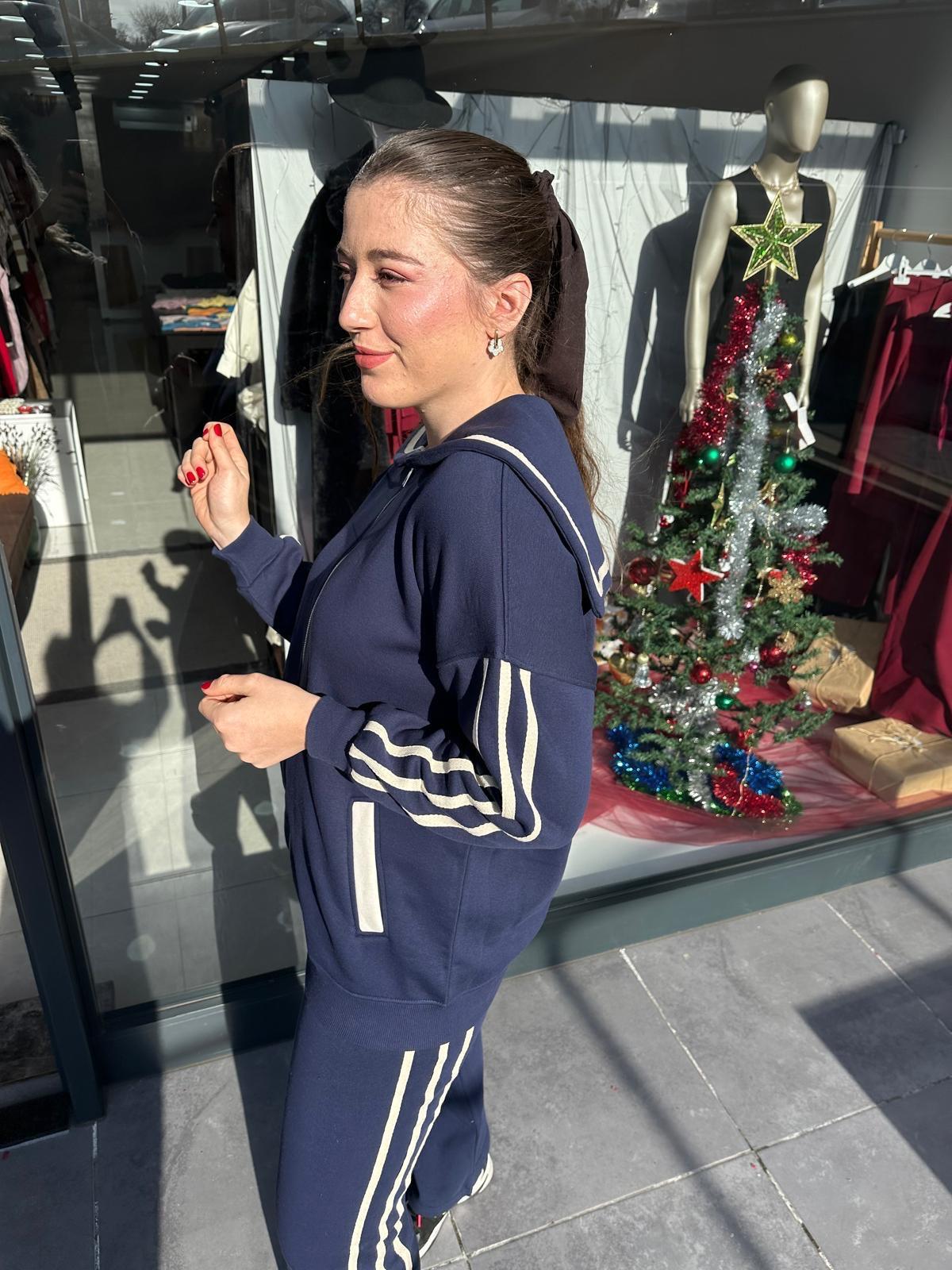 PAMUK LİCRA ŞARDONLU LACİVERT ŞERİTLİ EŞOFMAN TAKIMI