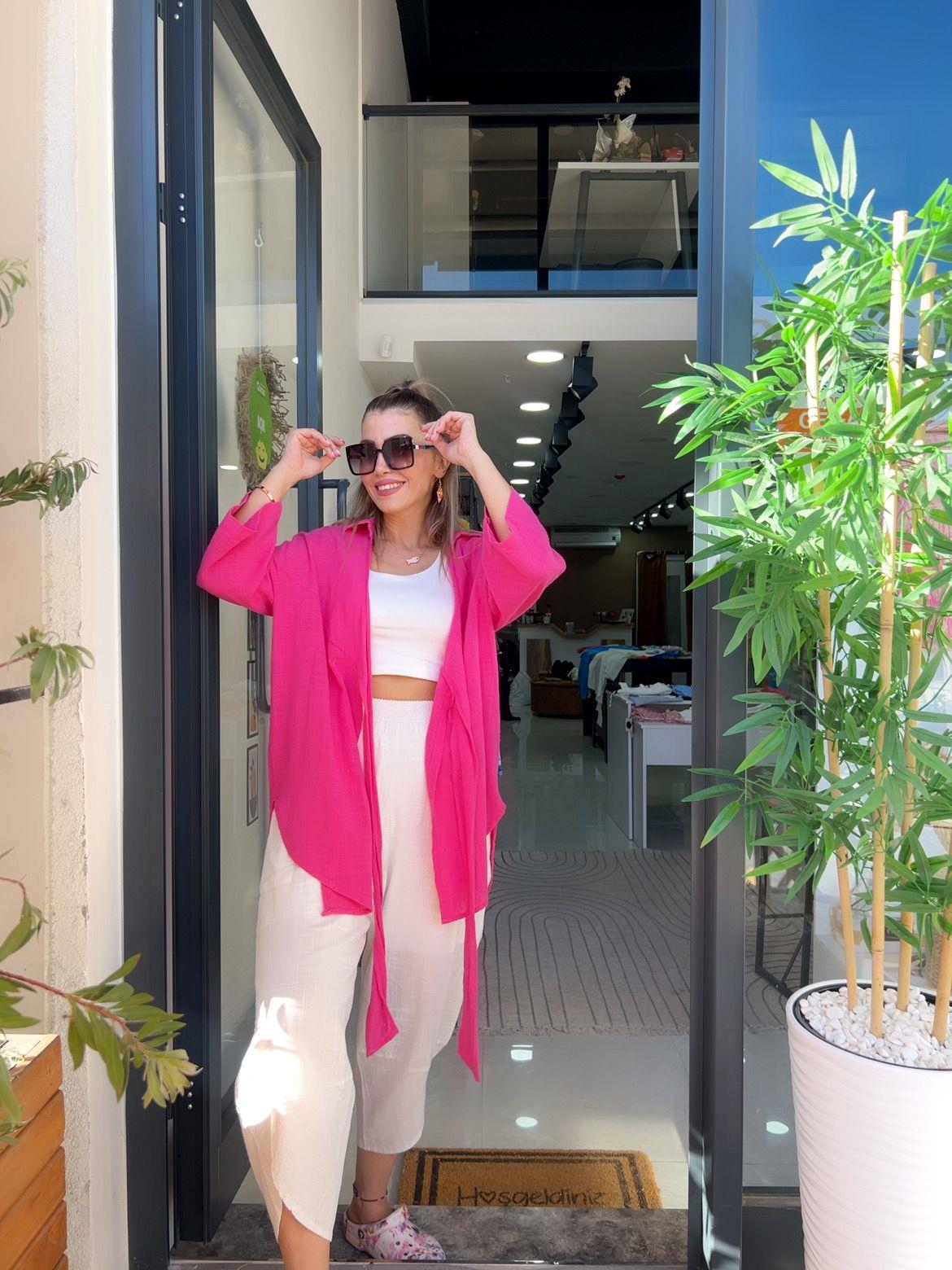 Pembe Keten Kimono