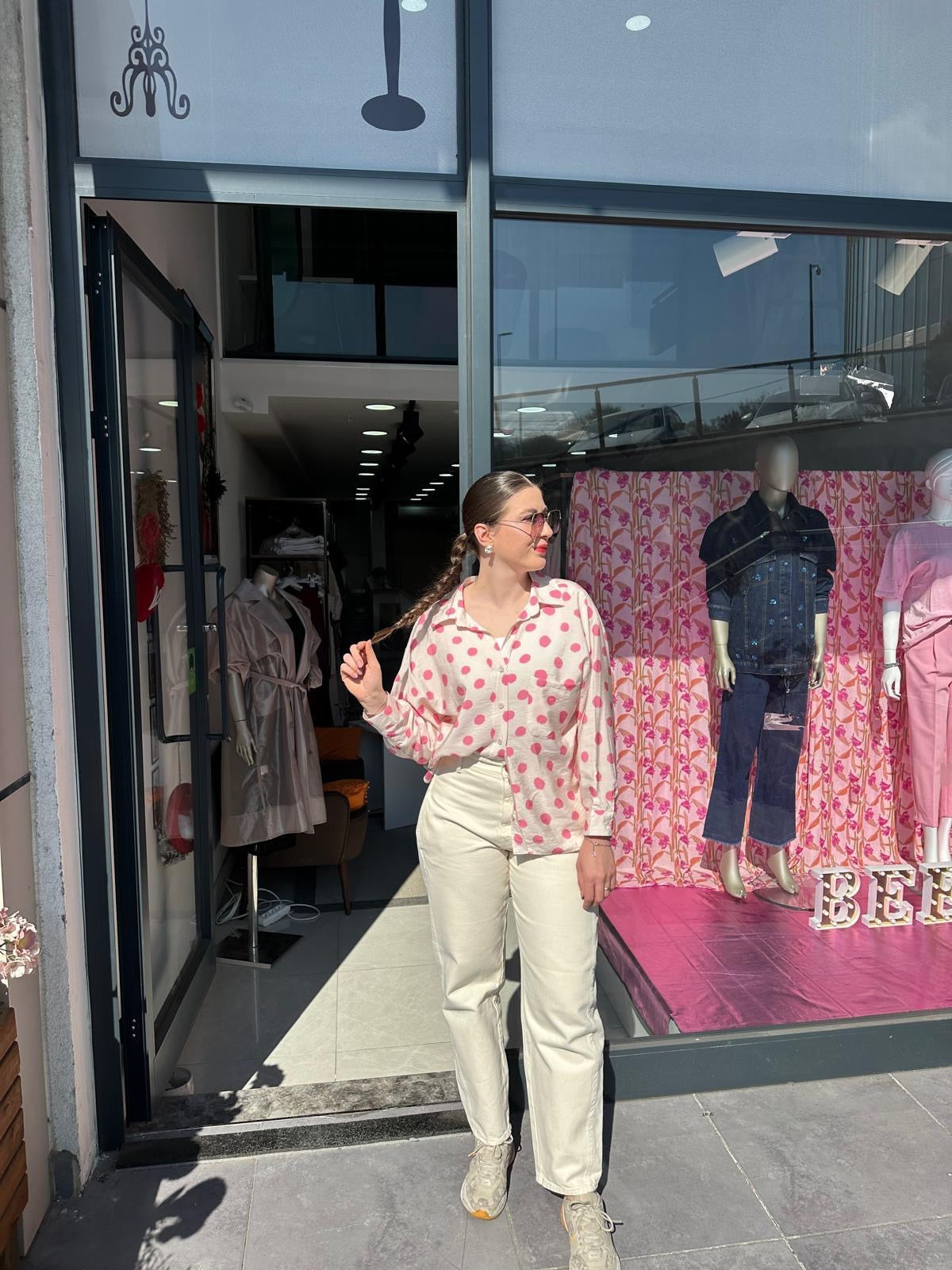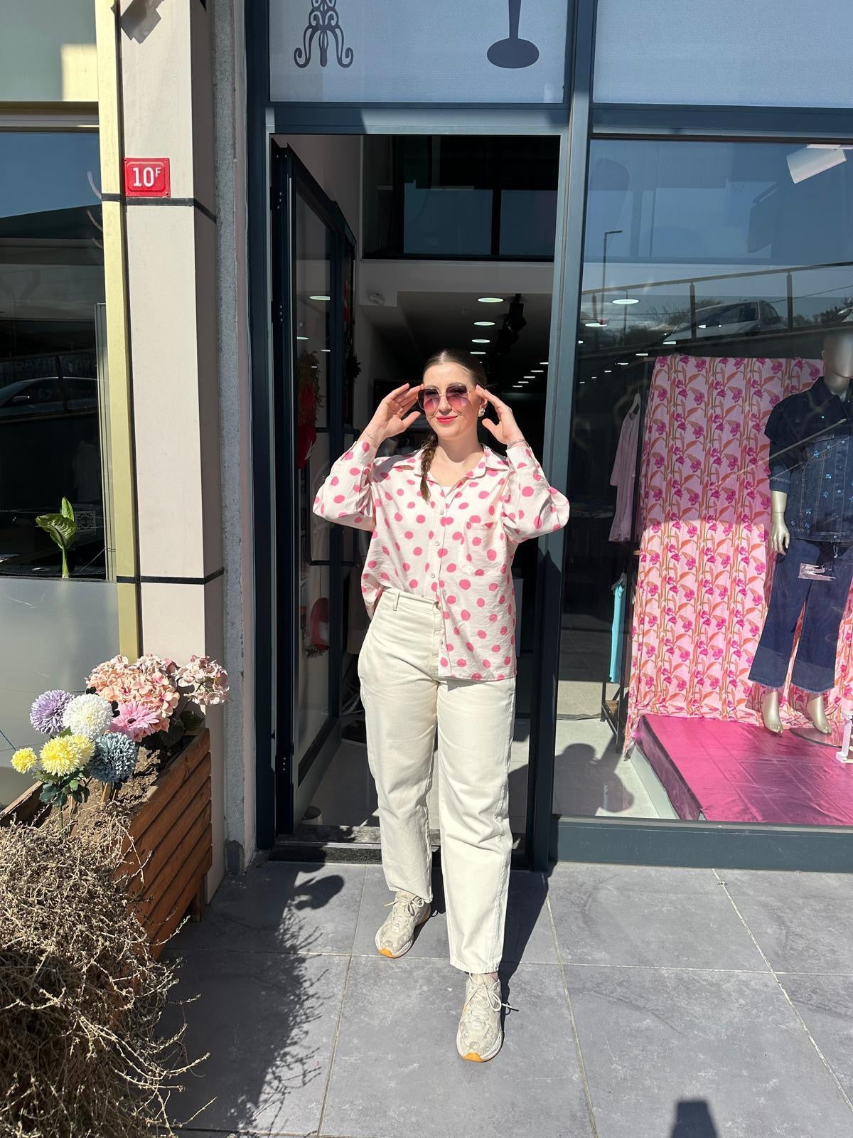 PEMBE PUANTİYELİ SALAŞ GÖMLEK