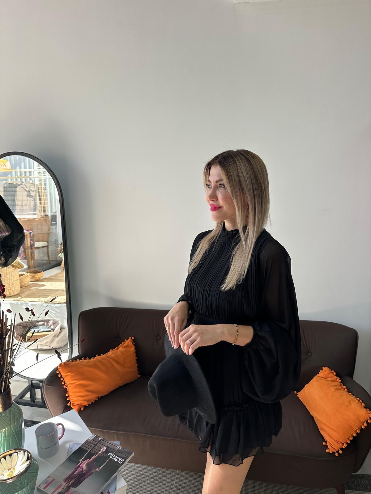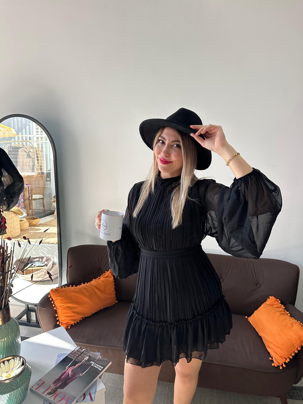 Siyah Pileli Elbise