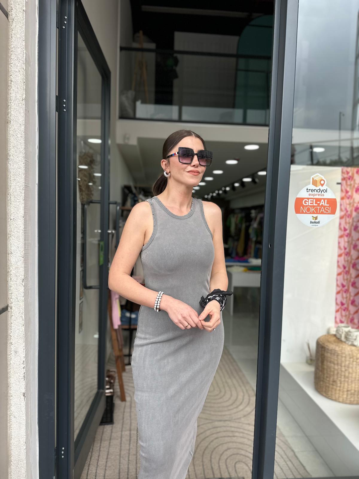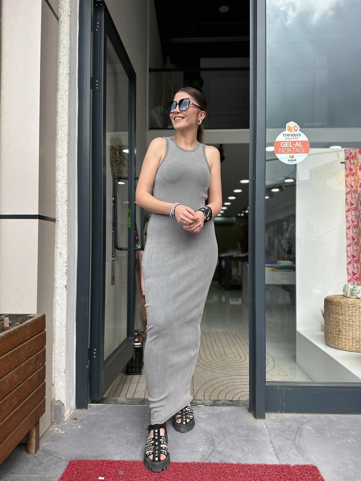 Vintage Gri Triko Elbise